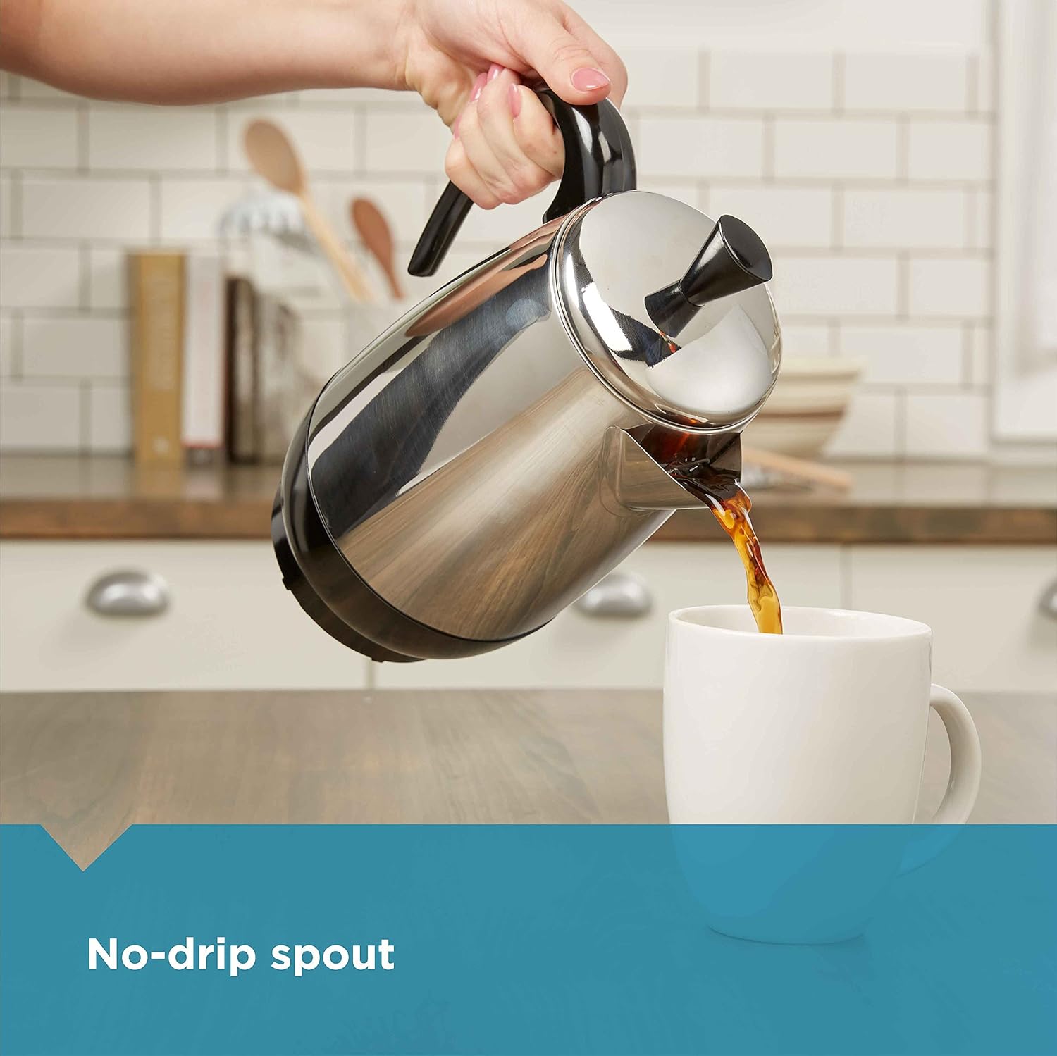 - PREMIUM STAINLESS STEEL EXTERIOR: Premium percolator constructed with stainless steel for a durable appliance that looks great in your kitchen; Stainless Steel Coffee Basket designed to extract maximum flavor from your favorite grounds