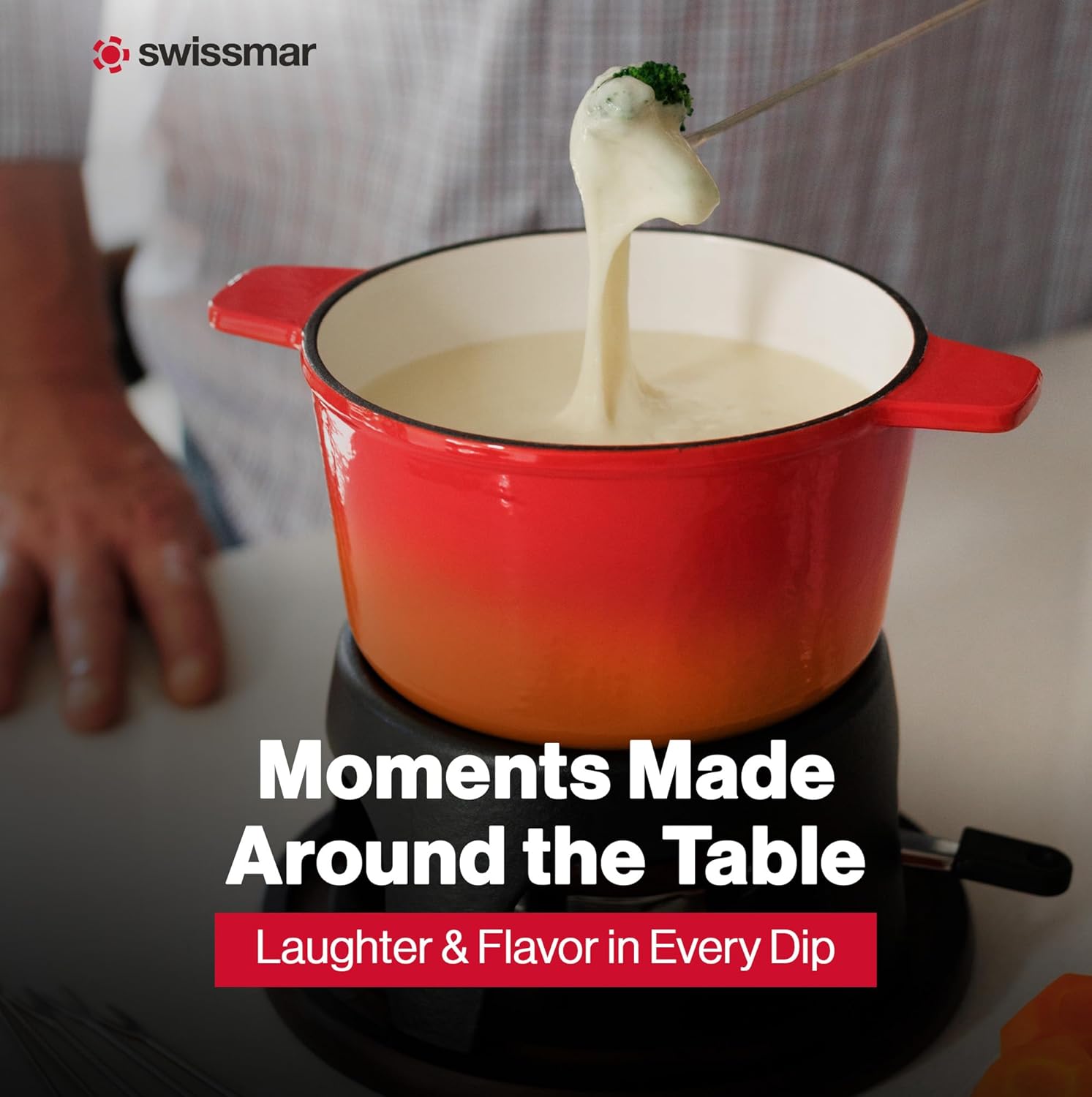 Swissmar Sierra Cast Iron Fondue Set, 1.6 Quart / 1.6 Liter – Perfect for Meat, Cheese, & Chocolate Fondues – Ideal for Family Bonding & Hosting Gifts - 12-Pieces, Gradient Orange