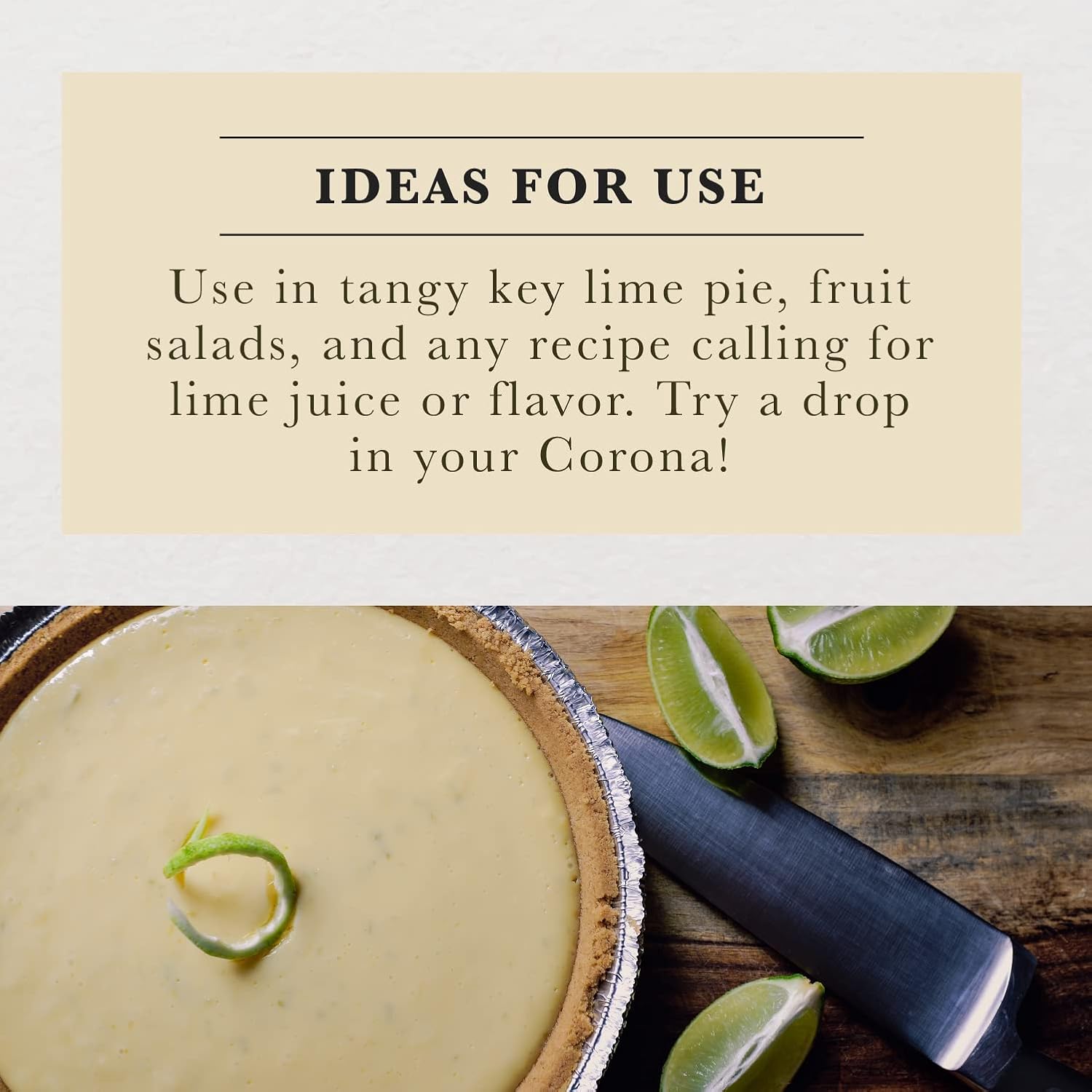 - Use for pizzazz in tangy key lime pie, fruit salads and any recipe calling for lime juice or flavor