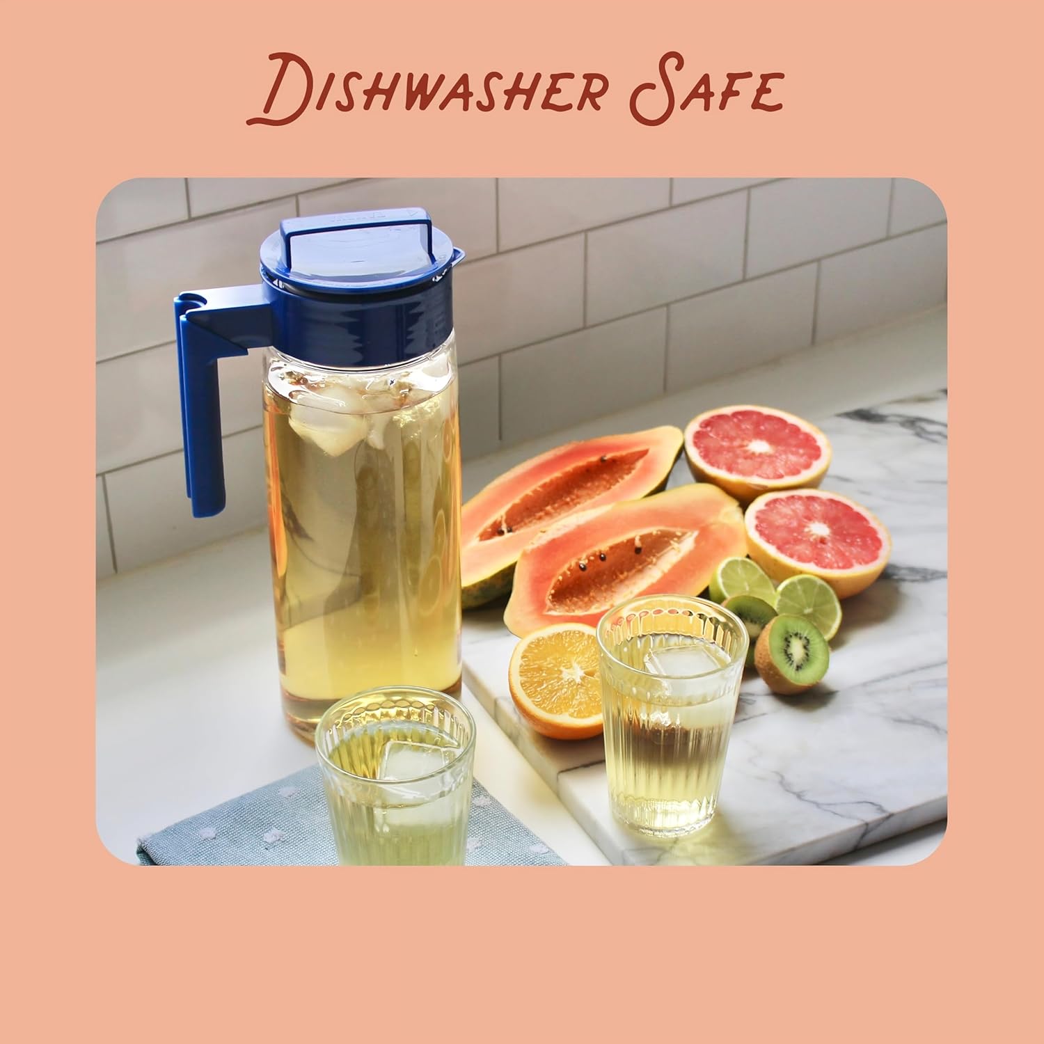 - Durable Pitcher for Kitchenware: Made with Tritan plastic, our durable iced tea maker withstands boiling and ice-cold temperatures for long-lasting use and is dishwasher safe
