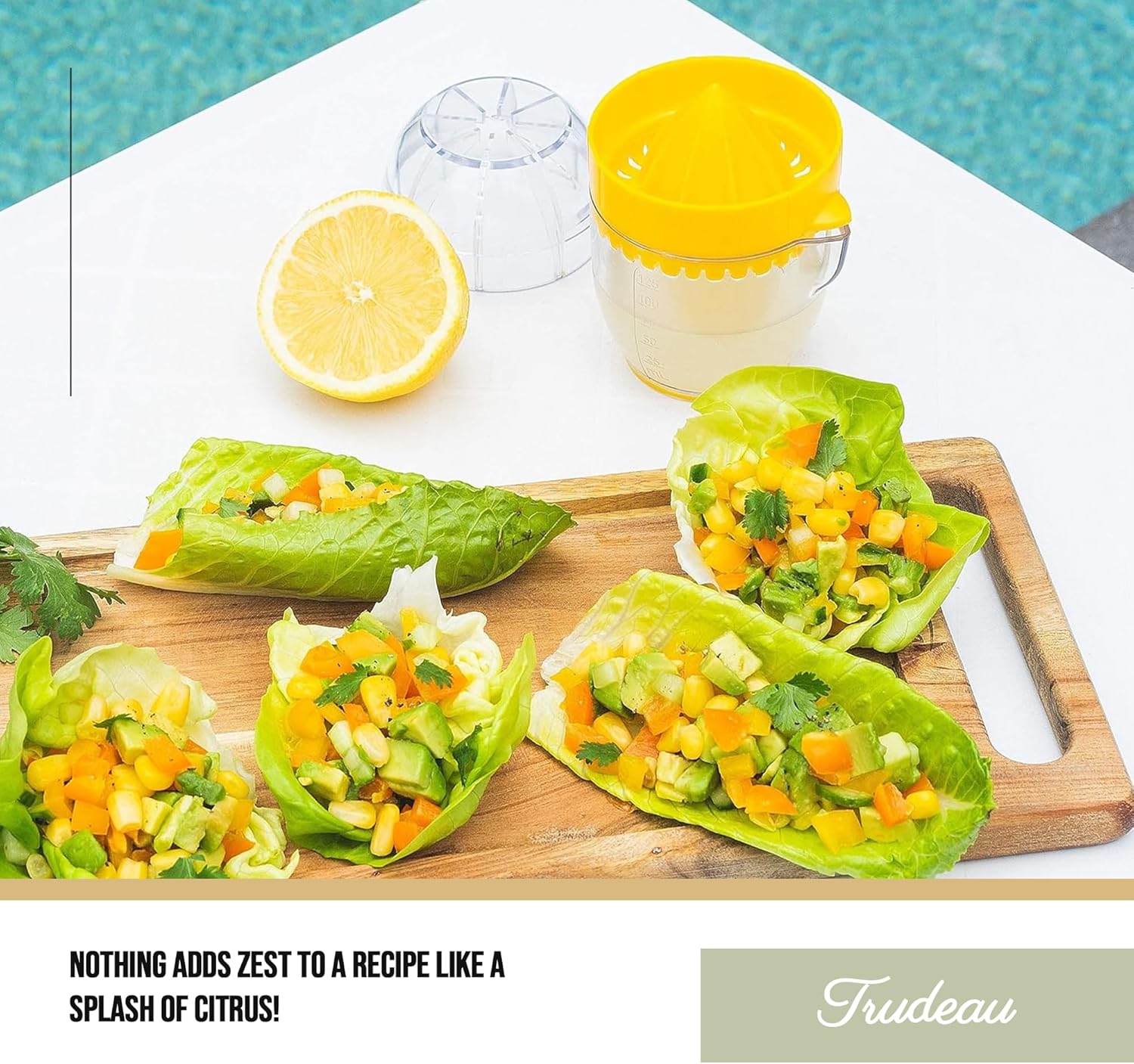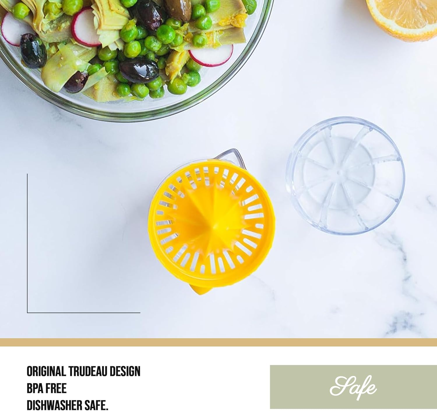 Trudeau Lemon Squeezer with Integrated Strainer – Compact Citrus Juicer with 1/2 Cup Capacity, Calibrated Container & Pouring Spout – BPA-Free & Dishwasher Safe – Original Trudeau Design