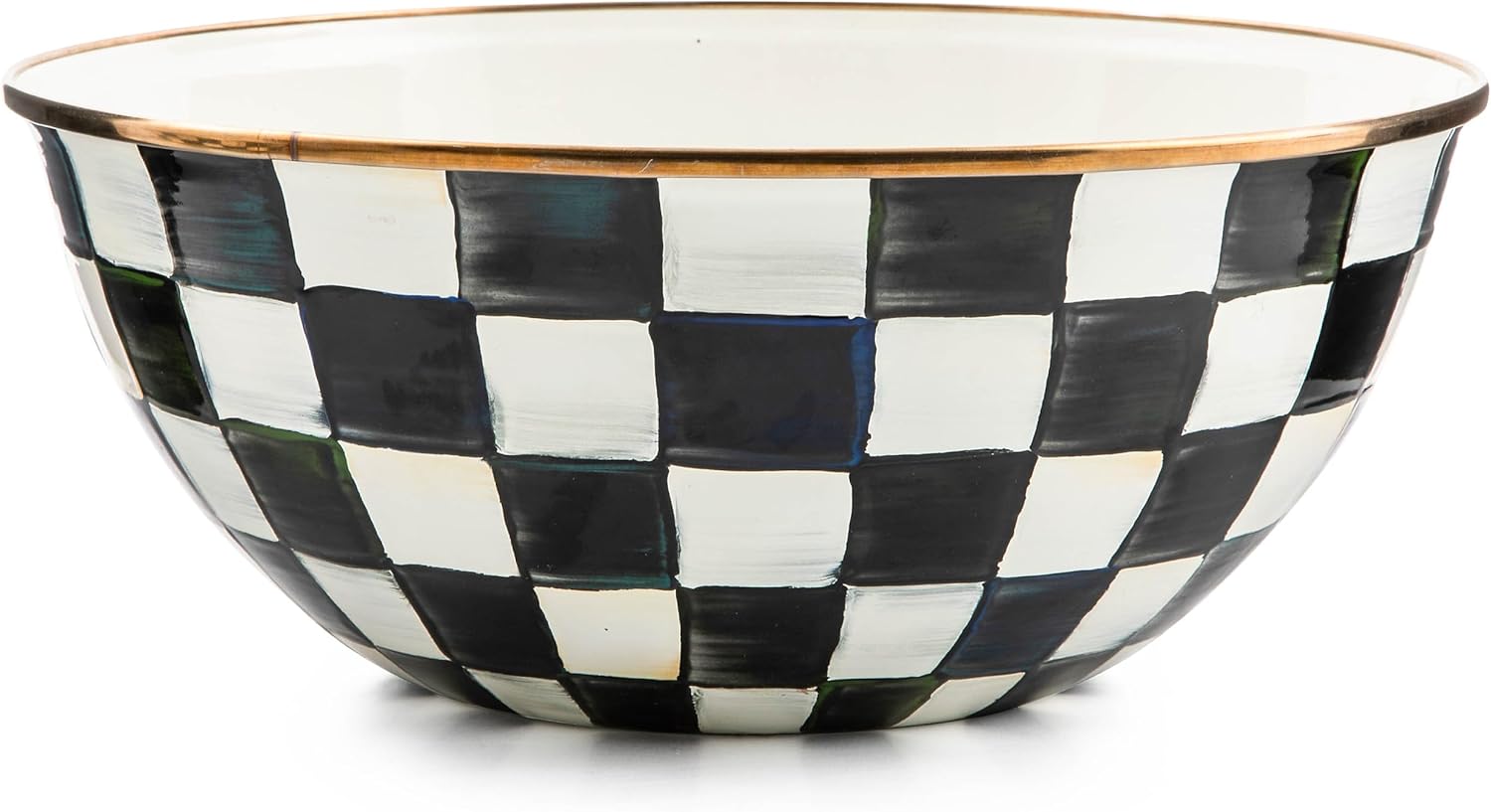 MACKENZIE-CHILDS Enamel Everyday Bowl, Serving Bowl for Entertaining, Large, Black-and-White Courtly Check, Set of 1