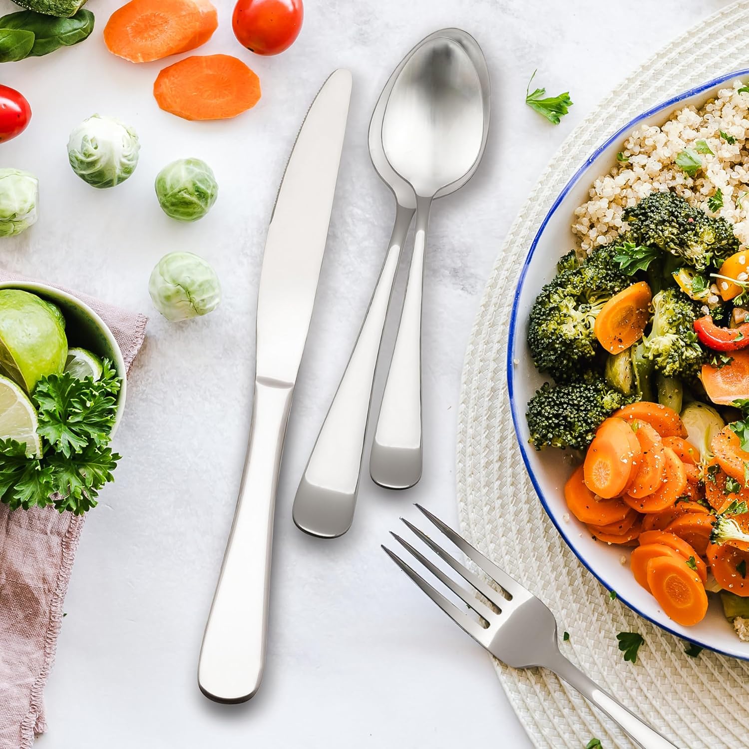 - Set Includes: (4) Salad Forks, (4) Dinner Forks, (4) Dinner Knife, (4) Dinner Spoons, (4) Teaspoons