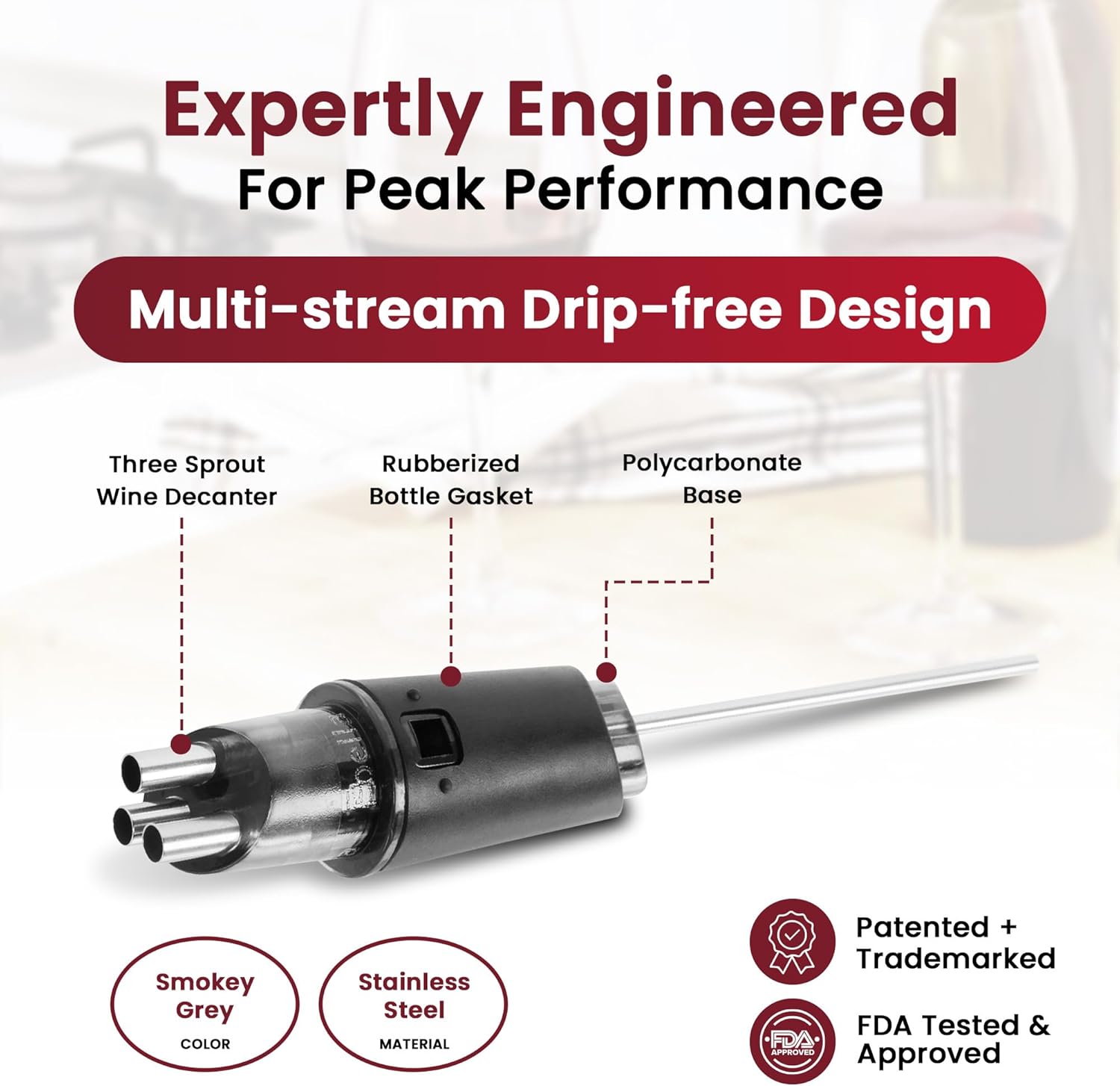 Classic Wine Aerator, Multi-Stream Wine Aeration 3 Stainless Steel Spouts, Handmade Kitchen Essential, Easy Use, No-Drip Wine Pouring Accessory Gifts for Men in Easy-to-Carry Protective Gift Case
