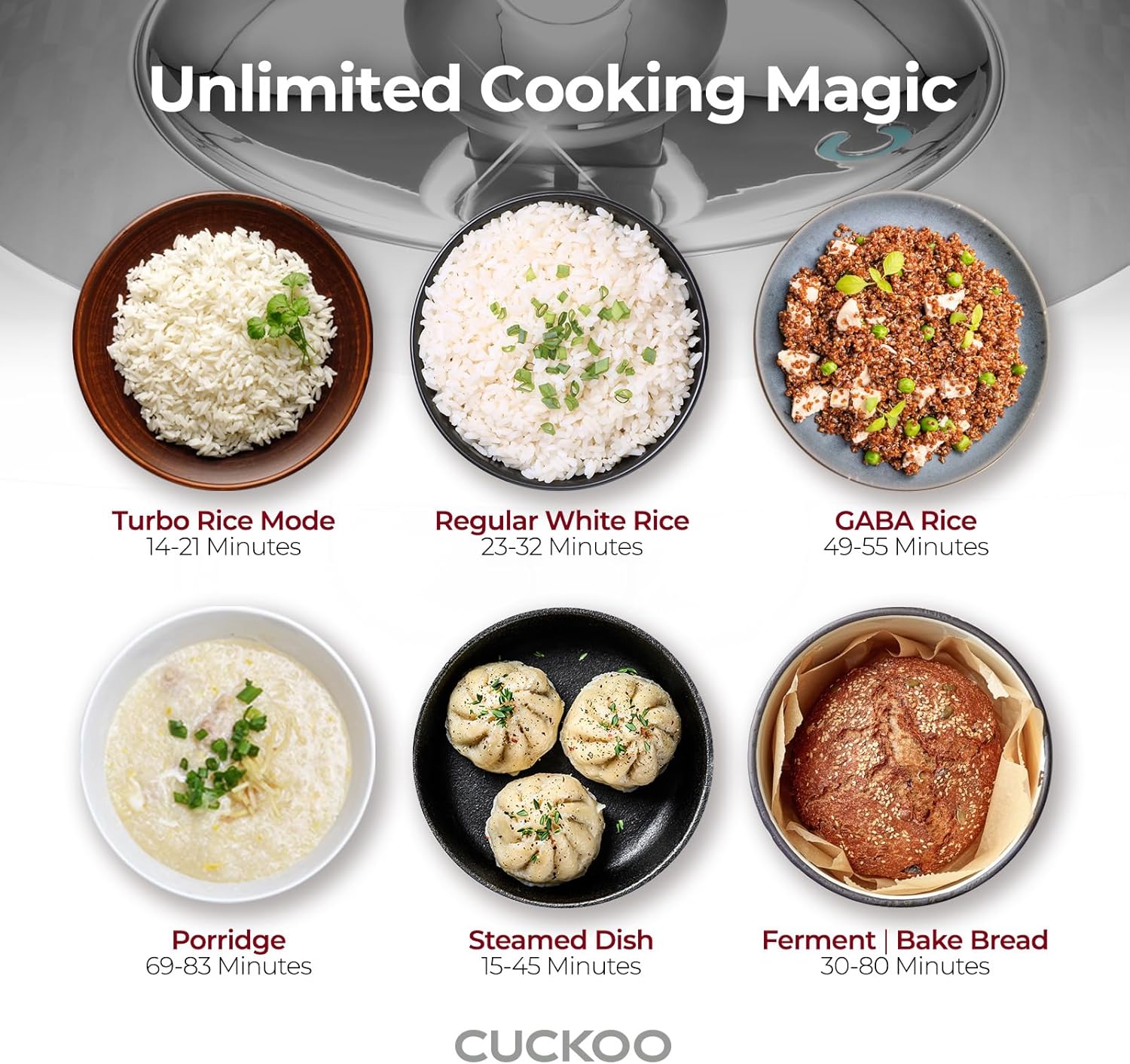 - My Mode Function: Allows you to take control of the temperature with an array of unique rice flavor and texture choices