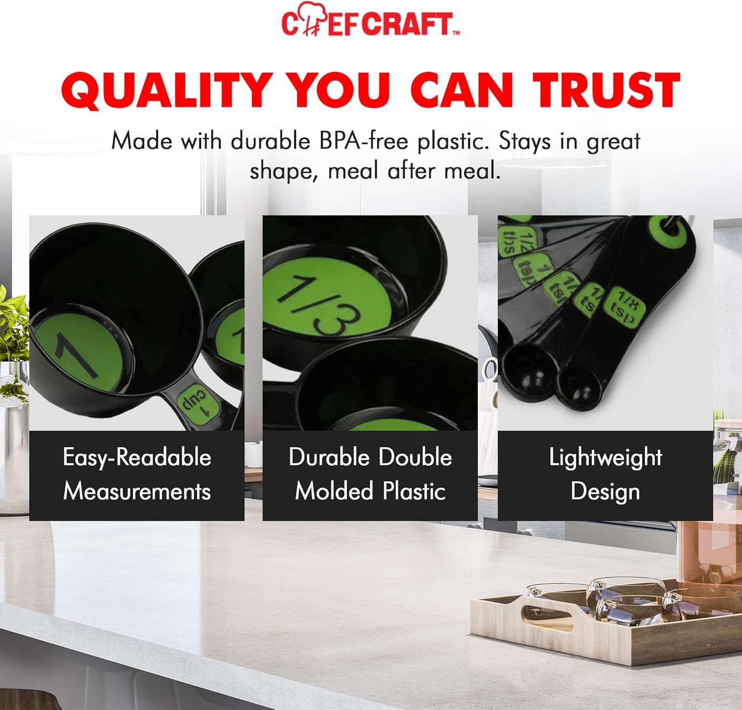 Chef Craft Easy to Ready Plastic Measuring Cup Set, 10 piece set, Green