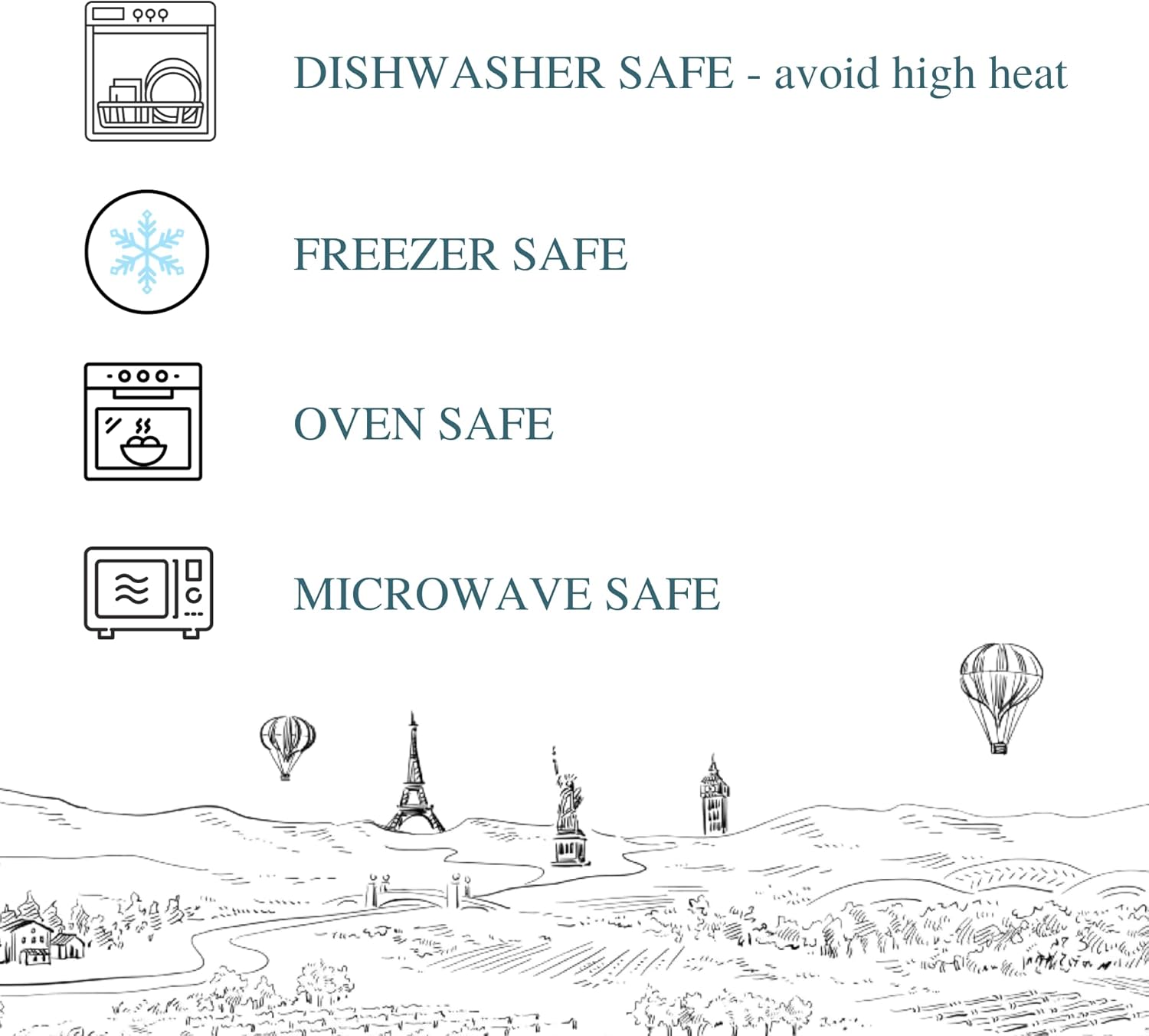 - USE AND CARE: Dishwasher (avoid high heat), Freezer, Microwave and Oven Safe (up to 500 degrees). Avoid cleaners that contain citrus. For pieces that contain a non-ceramic component, such as the Soap Pumps or Tiered Server, we recommend hand-wash only.
