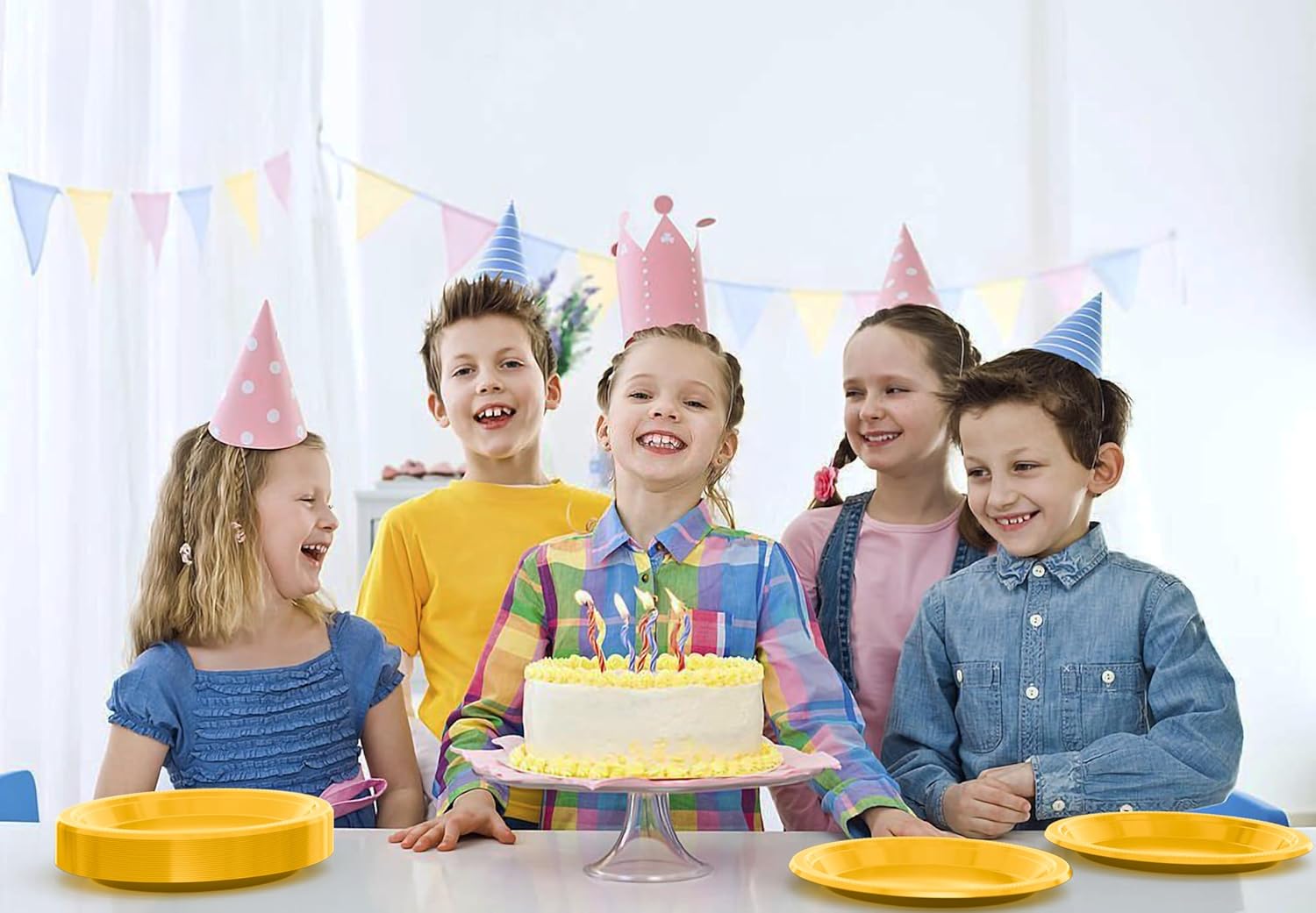 - Includes: Each pack comes with 100 Yellow 9 inch dinner plates. These plates may be used as dinner plates or cake plate and also make a great use as picnic supplies. Having these will complete your plastic dinnerware collection.