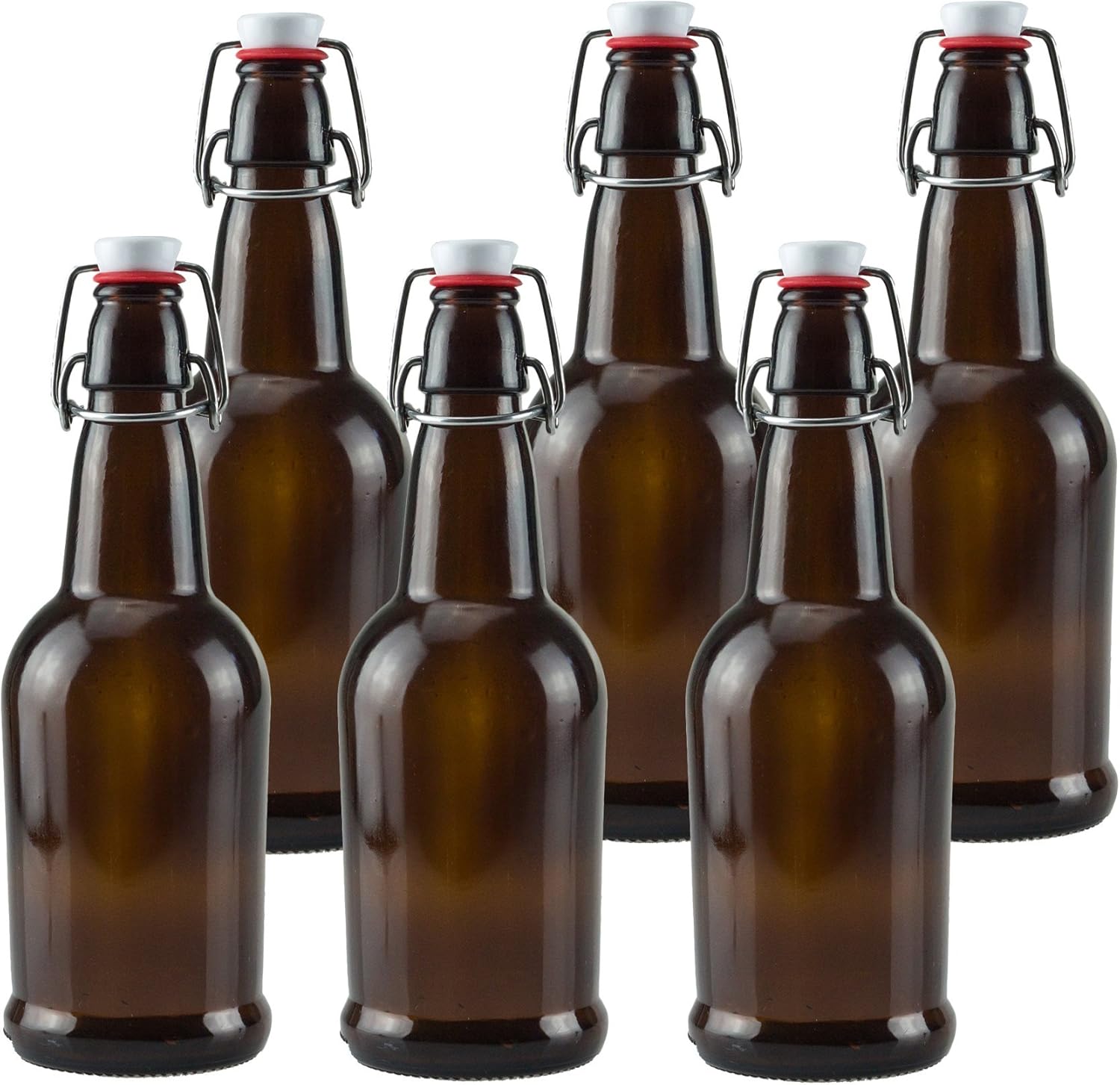 - Extra Strong Seal - The Flip Cap tops are made with sturdy steel and thick rubber gaskets to provide a super strong, leak proof seal, which helps preserve your homemade beverages, carbonation, or fermentation. 16 oz bottles. Case of 6. Amber Color.