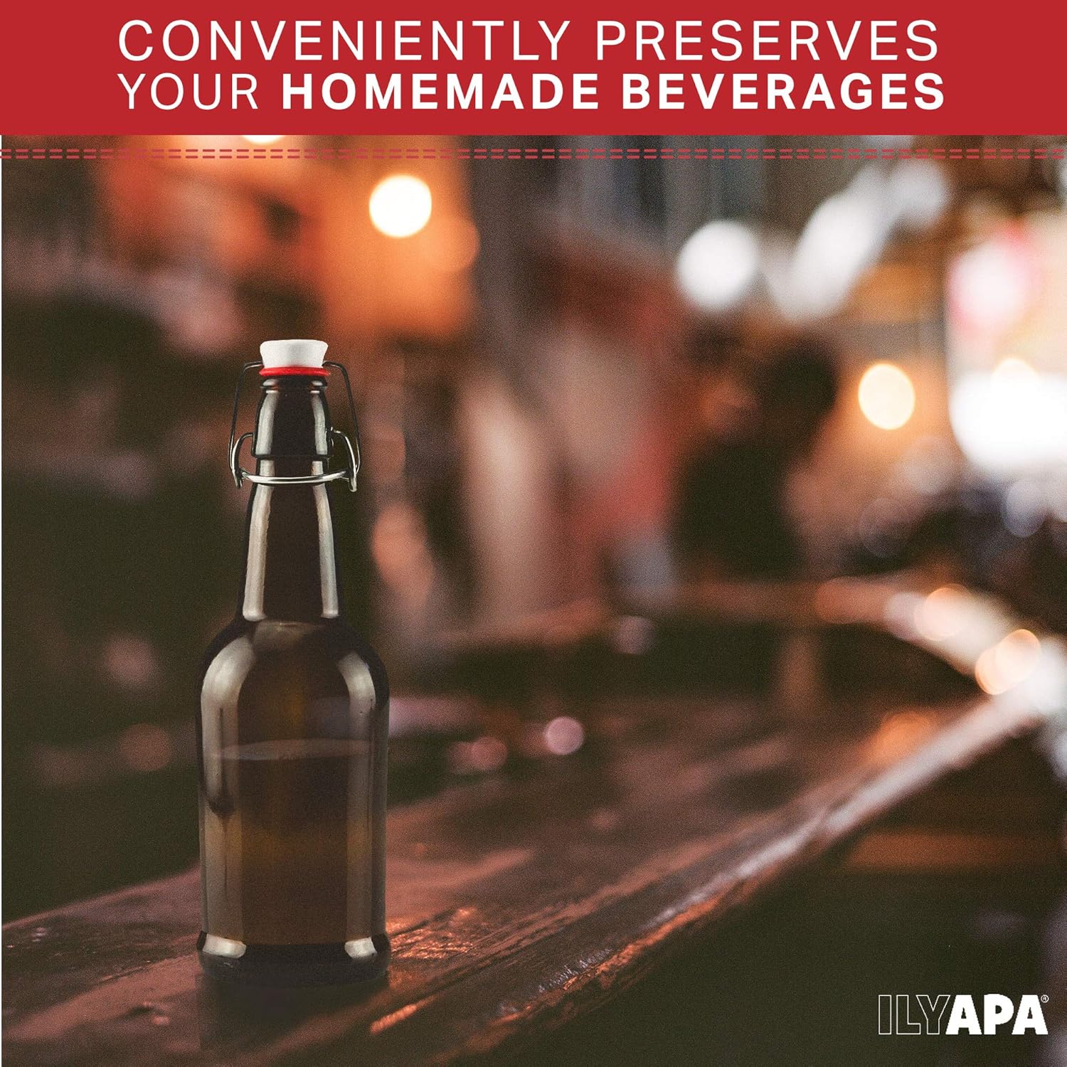Ilyapa 16oz Amber Glass Beer Bottles for Home Brewing - 6 Pack with Airtight Rubber Seal Flip Caps