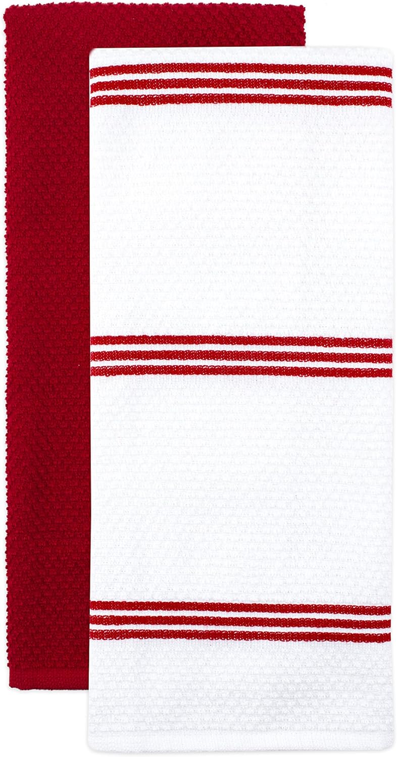 - ABSORBENT and DURABLE: 100% Oeko-Tex certified cotton kitchen towels and dishcloths have a durable popcorn terry texture, making them highly absorbent and long-lasting. They're great for wiping up spills and drying dishes, yet soft enough for drying hands.
