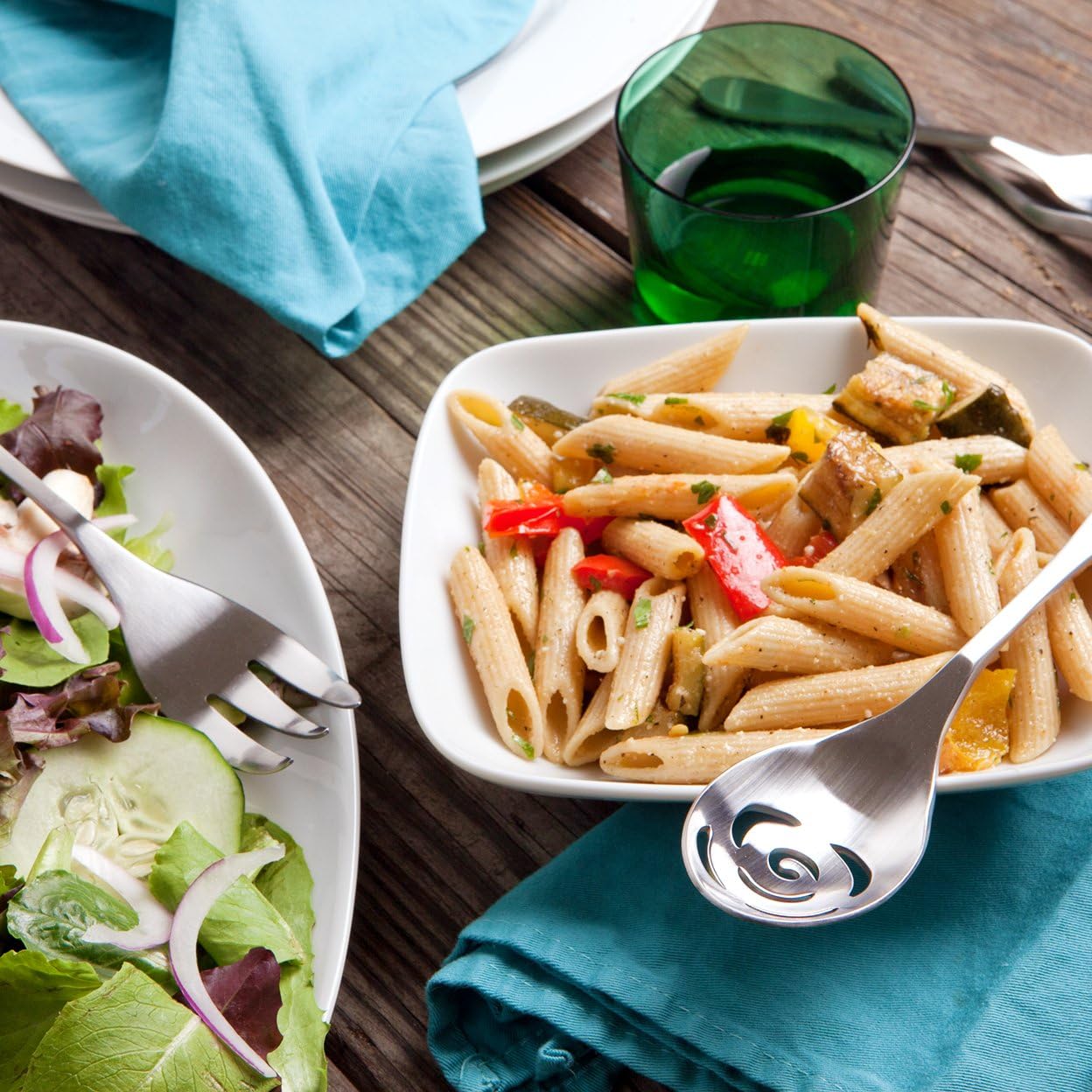 - Signature forks have built in cutting powers (round thinned tines and a beveled edge) allows the user to safely rock thru foods. All of the utensils feature a finger platform and contoured handle for comfort and leverage.