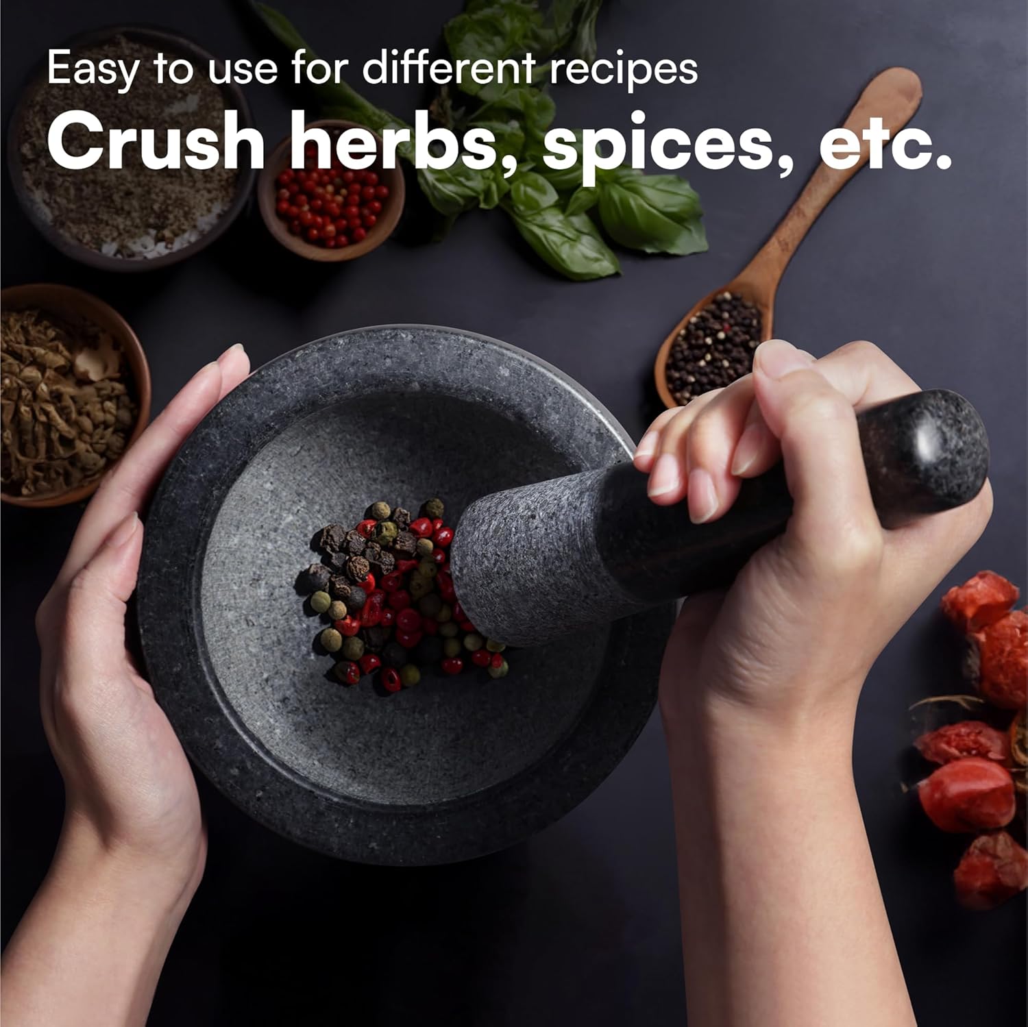 - All About Natural Flavors: The pestle & mortar can help you in creating the most authentic recipes. Crush up spices and herbs to release the natural flavors & aromas of the ingredients to impress your entire guest list with the tastiest dishes ever.