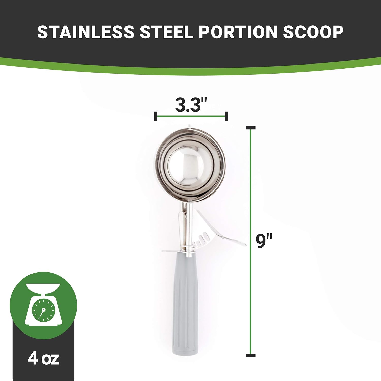 - INCLUDES 1 PORTION DISHER: Measuring 9.3 inches long by 3.3 inches wide by 1.5 inches tall, this portion disher has a 4-ounce capacity. You will get 1 portion disher.