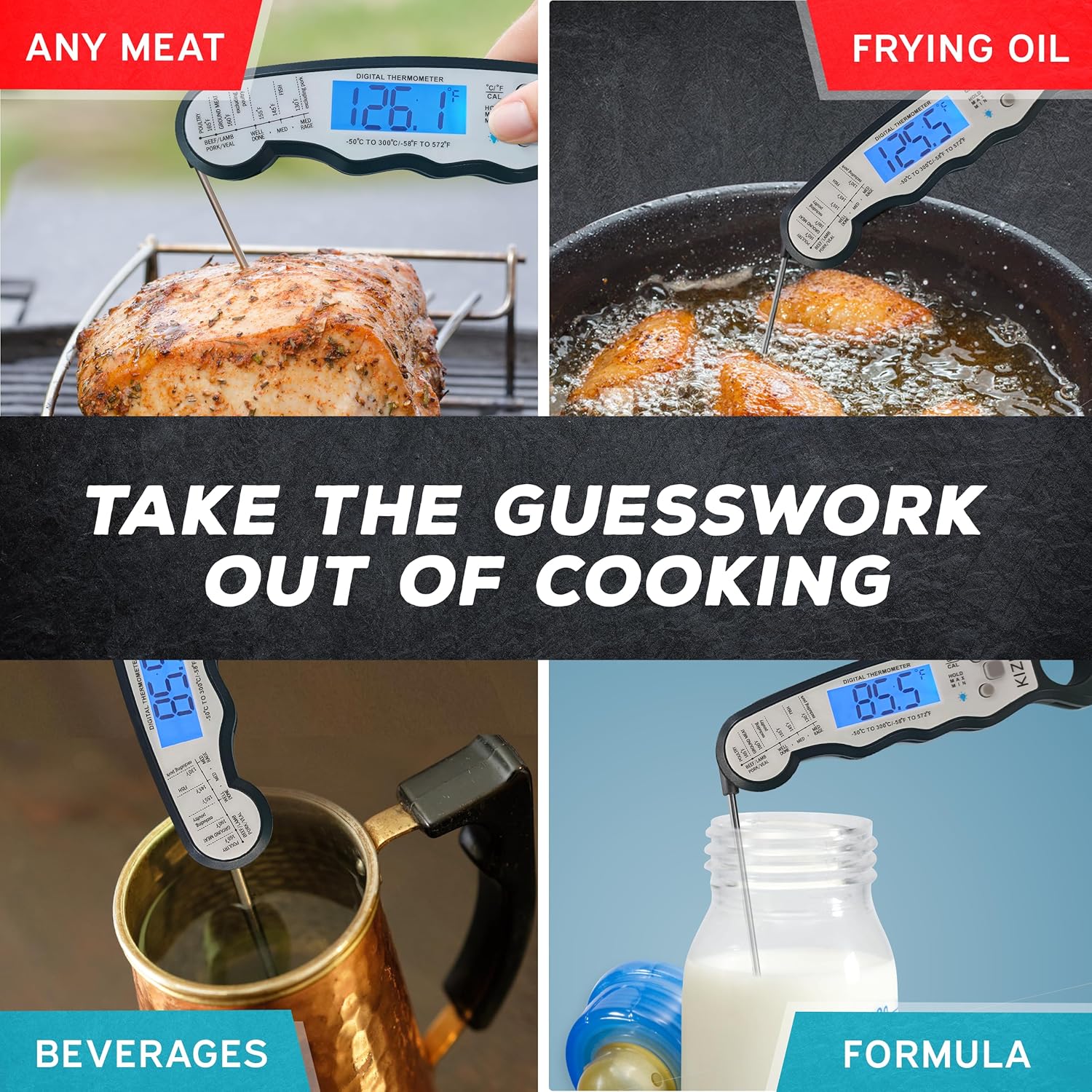 Kizen Instant Read Meat Thermometer Digital - Food Thermometer for Cooking, Grill, Oven, BBQ - Waterproof and Backlit Display - Kitchen Gadgets