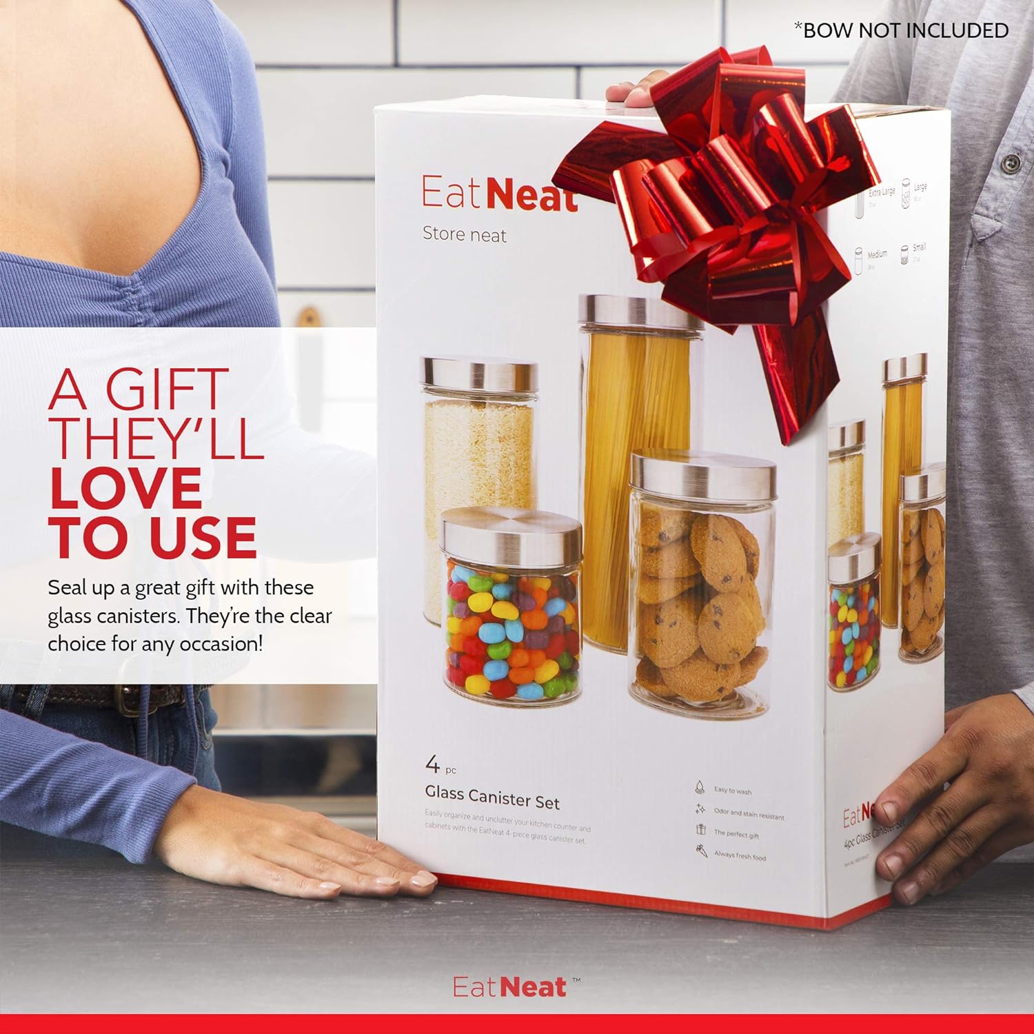 - Practical and Stylish Gift: When you're looking for a practical yet stylish gift, consider EatNeat's glass storage containers with lids for the pantry. These canisters are ideal for new homeowners, cooking enthusiasts, or anyone who appreciates a tidy kitchen. Not only do they offer functionality by keeping pantry items organized and fresh, but they also add an element of elegance to any kitchen decor. Give the gift of organization and style with EatNeat's glass storage containers, a thoughtful choice for any occasion.