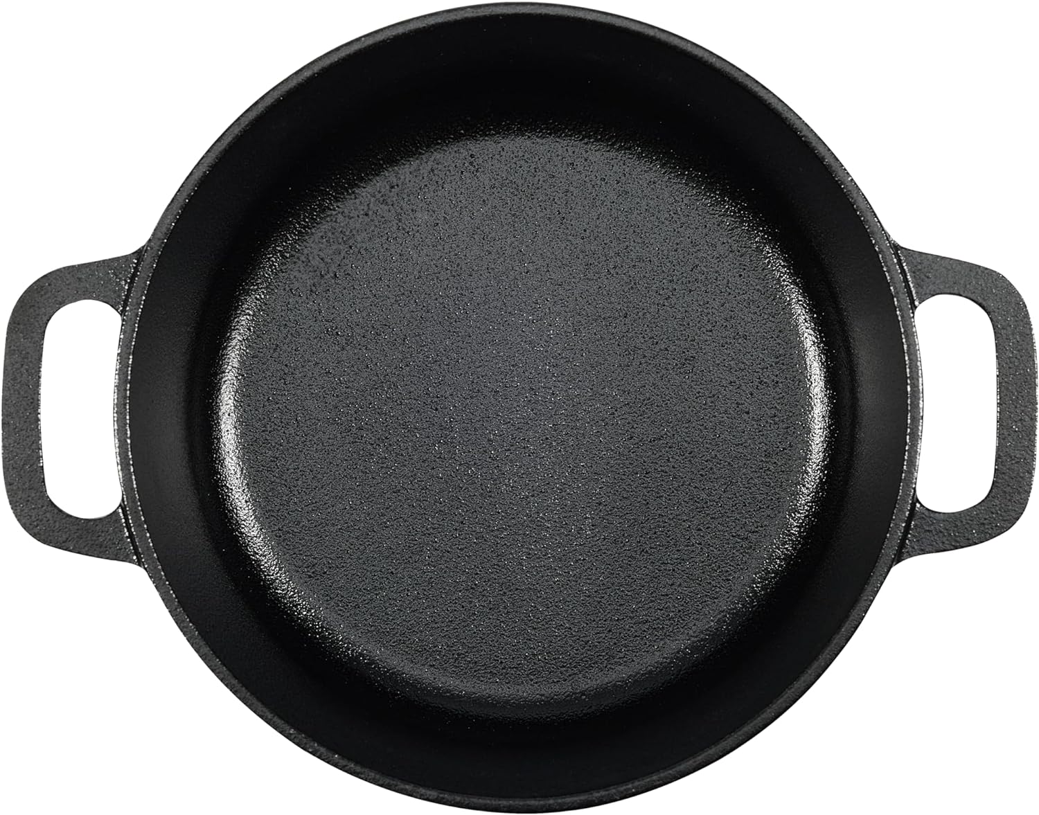Amazon Basics Round Pre-Seasoned Cast Iron Mini Dutch Oven Pot with Lid and Dual Handles, 2-Quart, Black