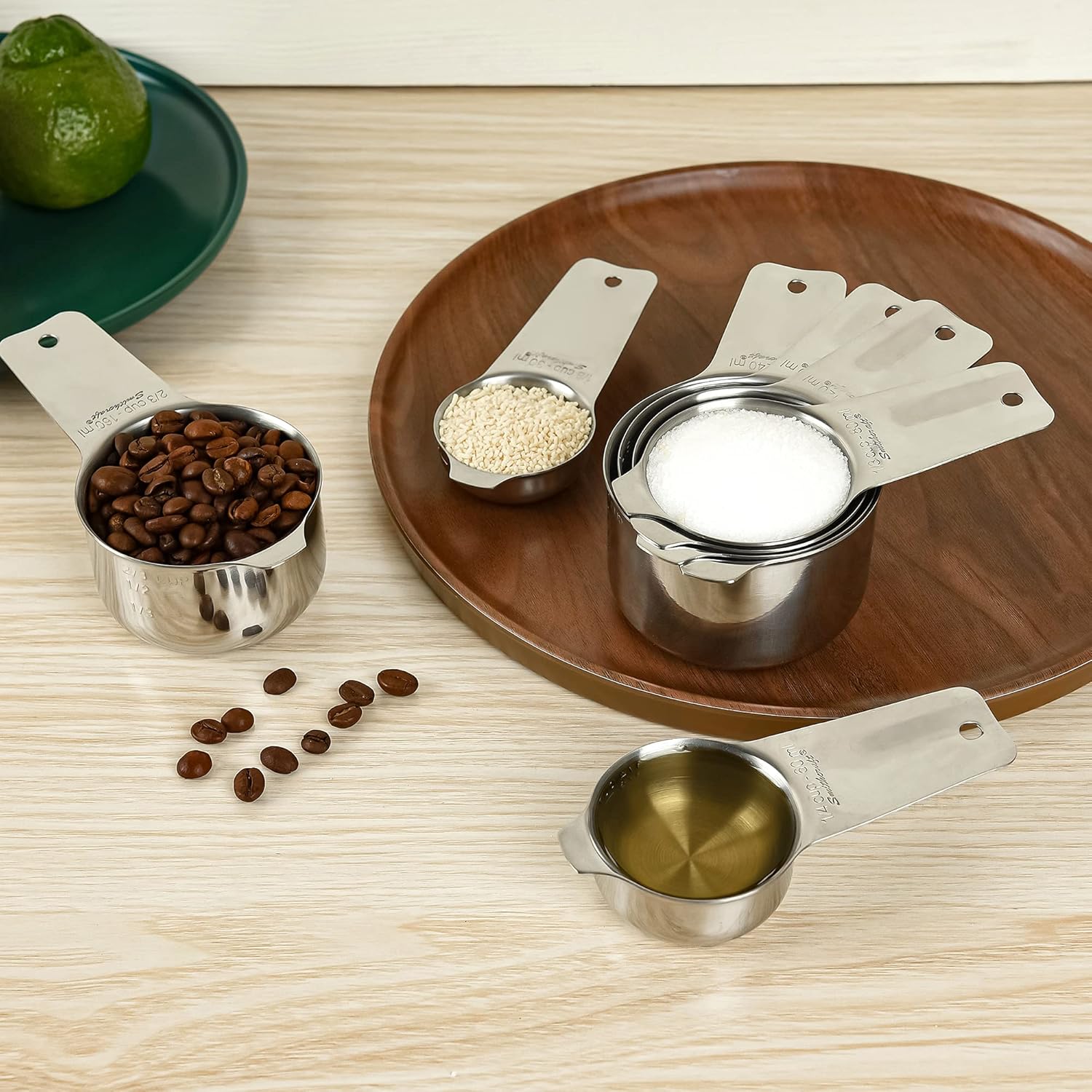 Smithcraft Measuring Cups Set, Stainless Steel Measuring Cup Set 7, 18/8 Stainless Steel Measuring Cups for Kitchen, Metal Meausing Cups for Baking, Dry Nesting Measuring Tools-3/4, 2/3 Measure Cup