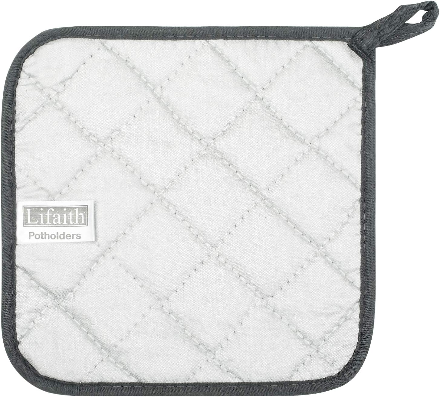 100% Cotton Kitchen Everyday Basic Terry Pot Holder Heat Resistant Coaster Potholder for Cooking and Baking Set of 5 Mineral Gray