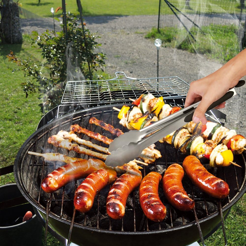 - Set of two Essential for kitchen including 9 inches and 12 inches cooking tongs, meet your basic needs in daily dining or home held party to clamp thick steak ,fish ,salads, also can be use for outdoor barbeque.