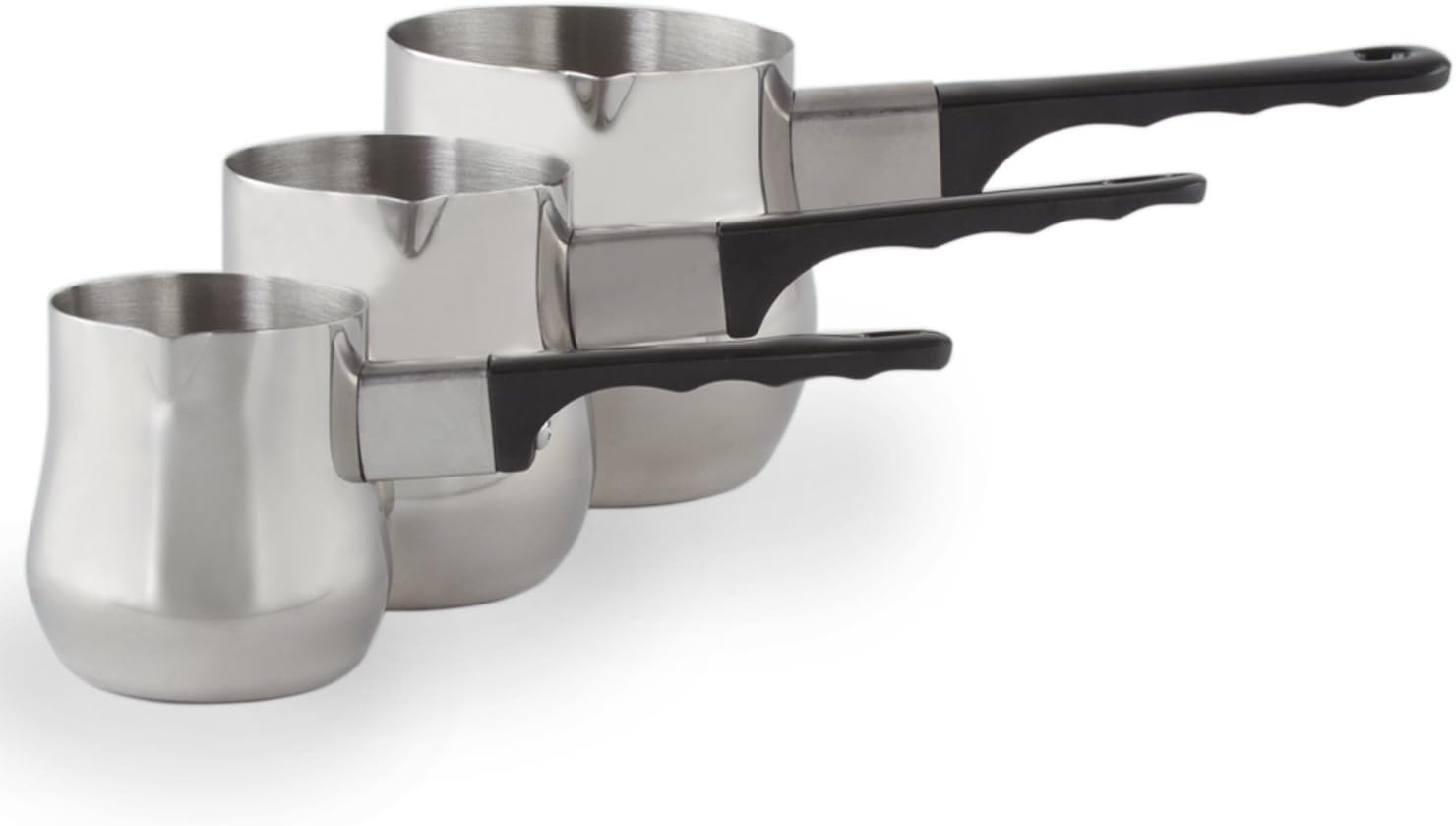 Imperial Home Turkish Coffee Pot Warmer Set, Stainless Steel Tea Pot, Espresso Warmer for Stovetop, Milk Frother, Butter Maker, Mini Melting Pot, Coffee Decanter & Carafe, 3 Pot Set