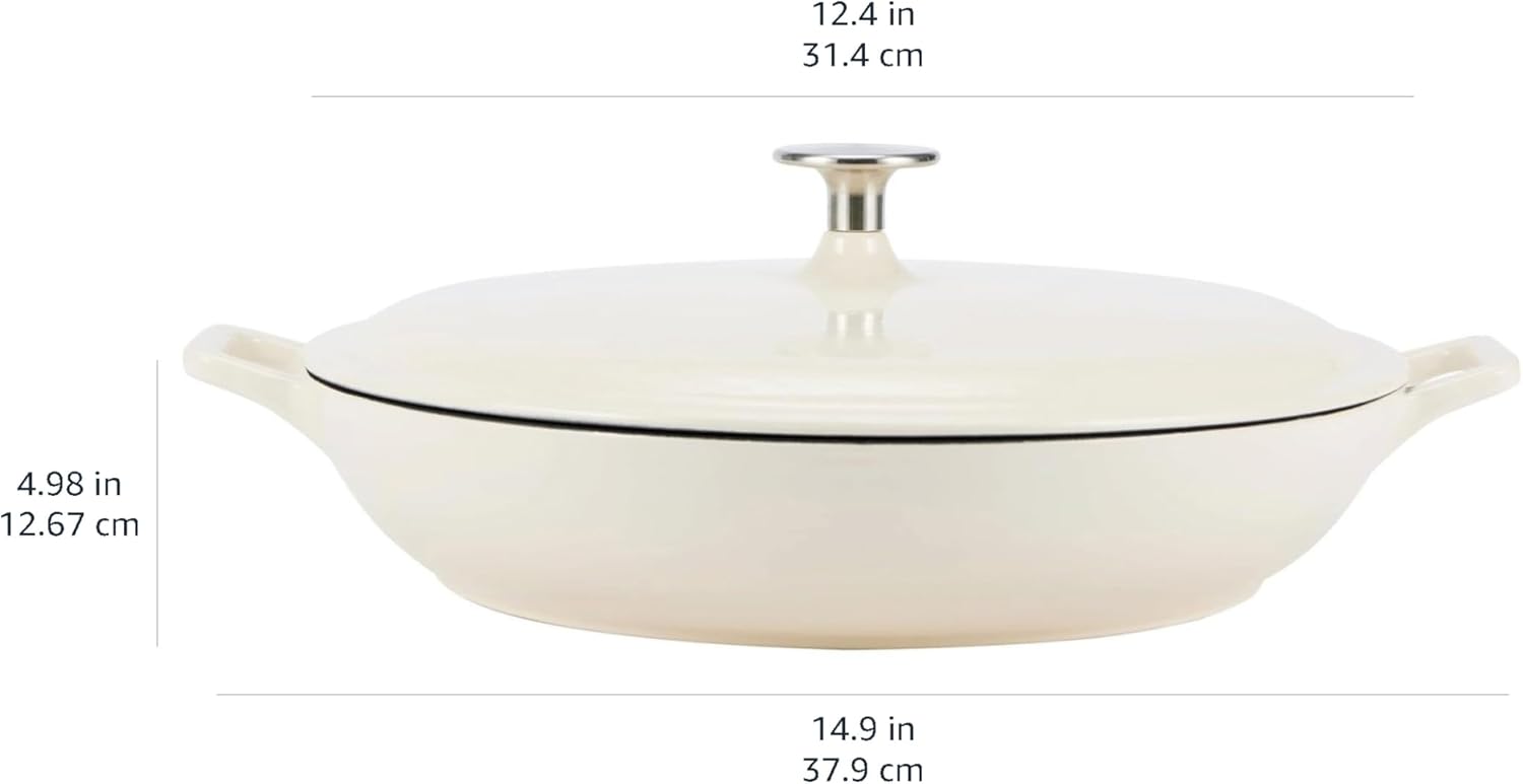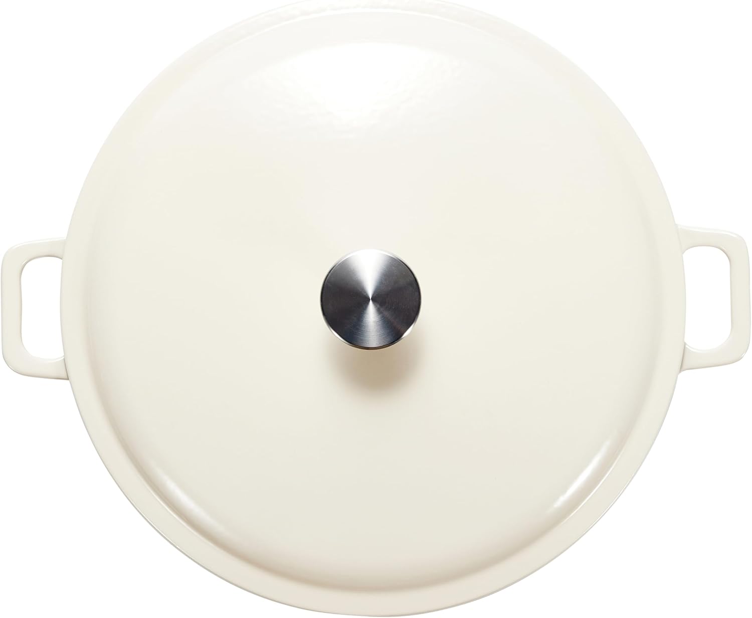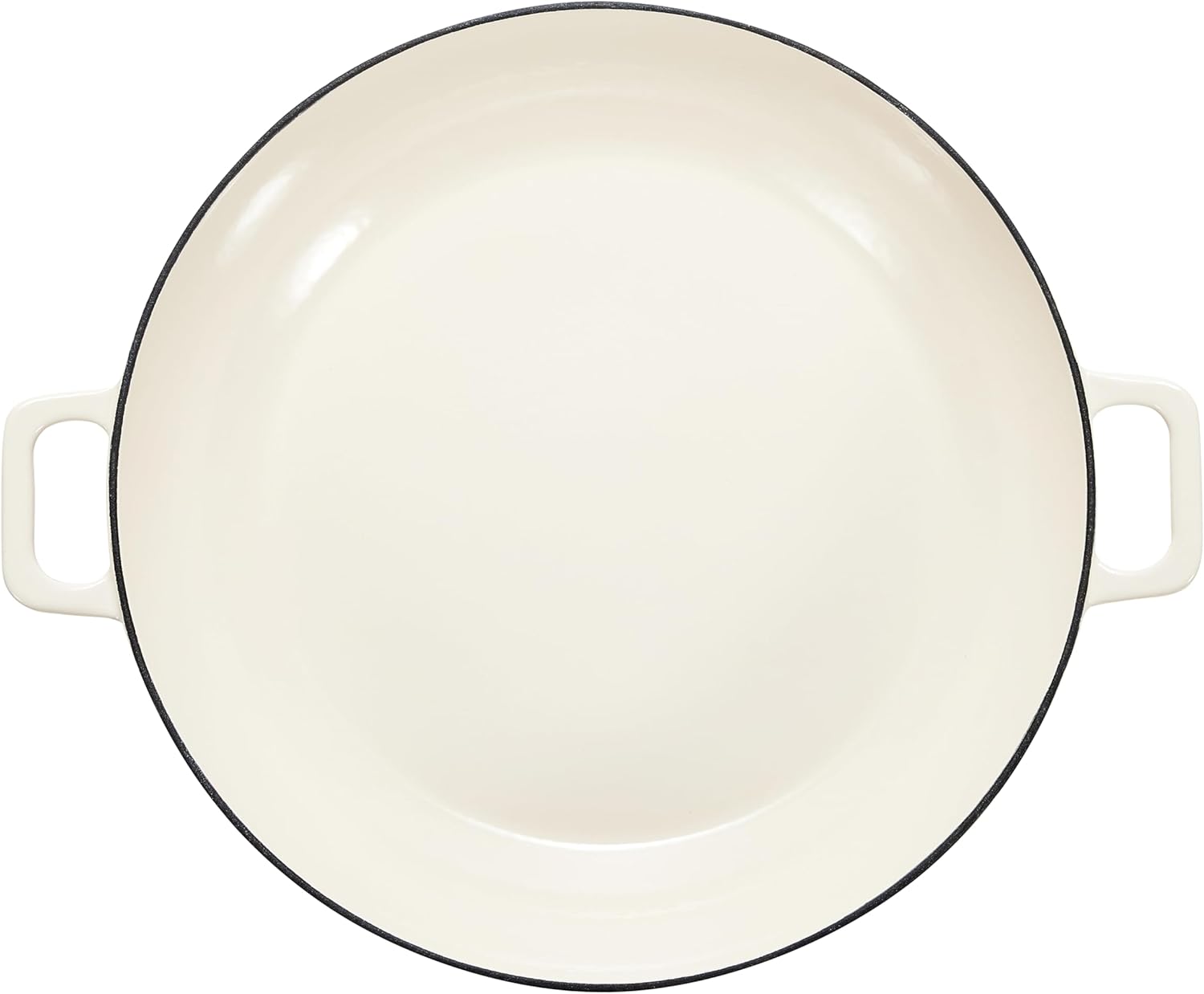 Amazon Basics Enameled Cast Iron Covered Round Casserole Skillet with Lid for Oven, 3.3-Quart, White