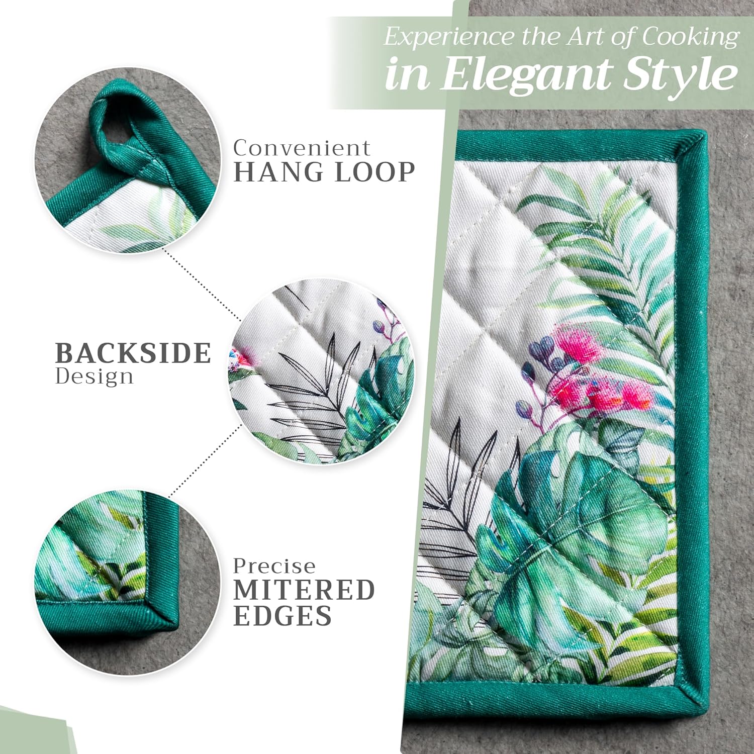 Maison d' Hermine Pot Holders 100% Cotton Heat Resistant Potholders 8" x 8" Hot Pads with Loop BBQ, Cooking, Baking, Grilling, Kitchen, Handling Hot Pans Spring/Summer (Pack of 1, Tropiques)