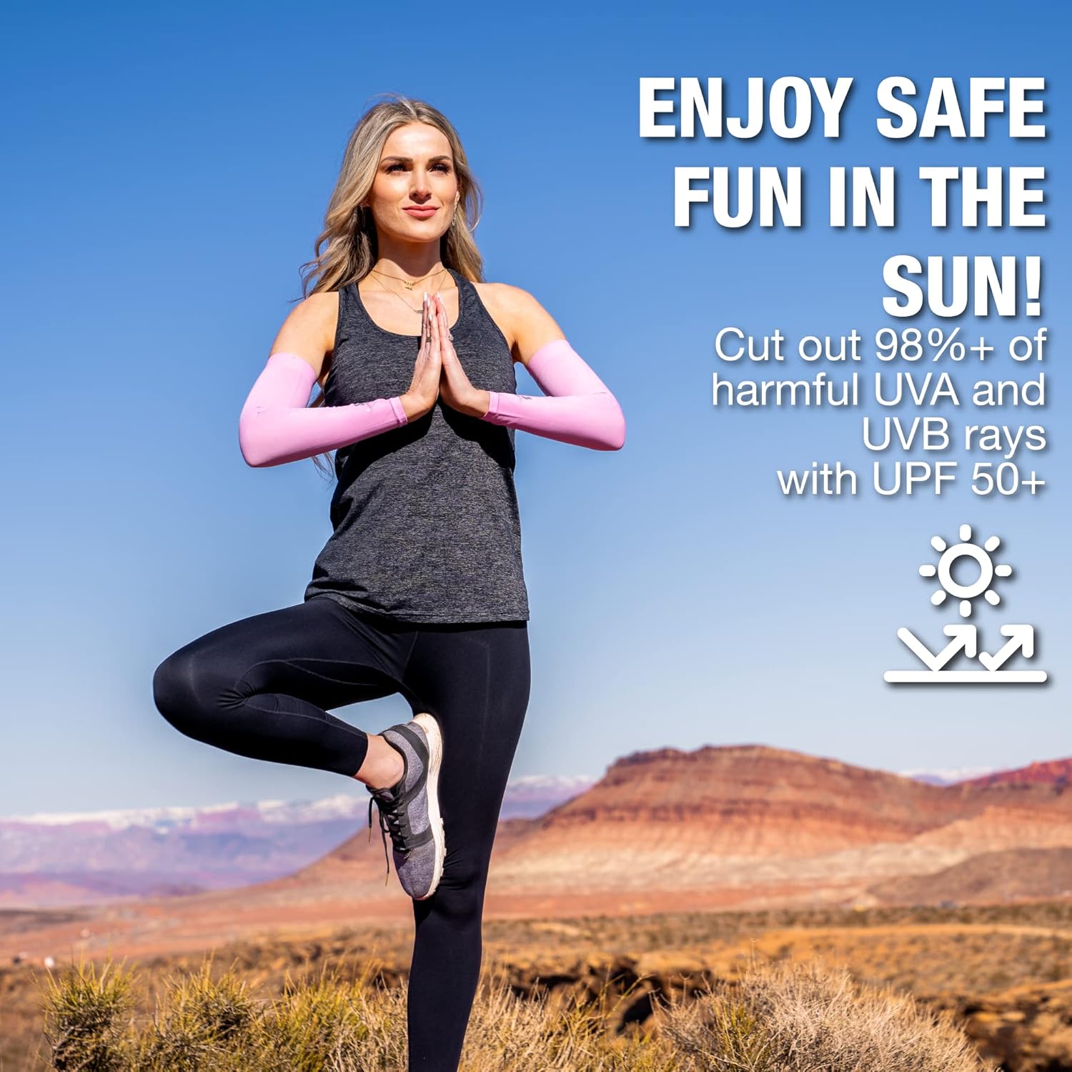 - Superior UPF 50+ premium arm sleeves – our innovative UV sleeves for men and women block over 98% of the sun’s harmful UVA and UVB rays, offering full UPF 50+ coverage. These sun sleeves for men and women are ideal for shielding yourself from the sun on hot days – whether you’re playing golf, basketball, baseball, volleyball, running, or cycling.