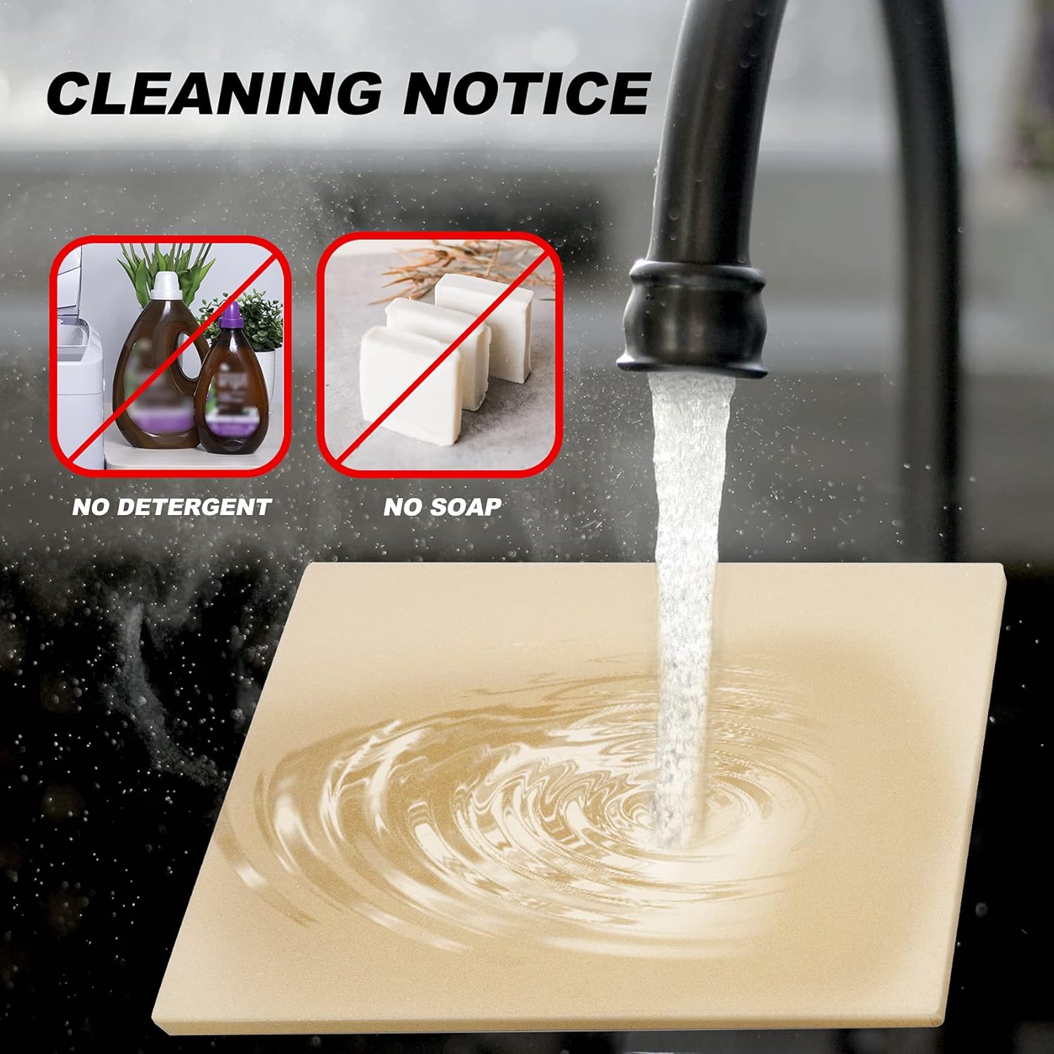 - How to Clean: Before cleaning, scrape off excess food with a spatula. Allow the stone to cool, then rinse it with warm water. Never use soap or detergent on the stone. The stains, caused by grease and bread crumbs, will not affect the performance or function of the cordierite pizza stone.