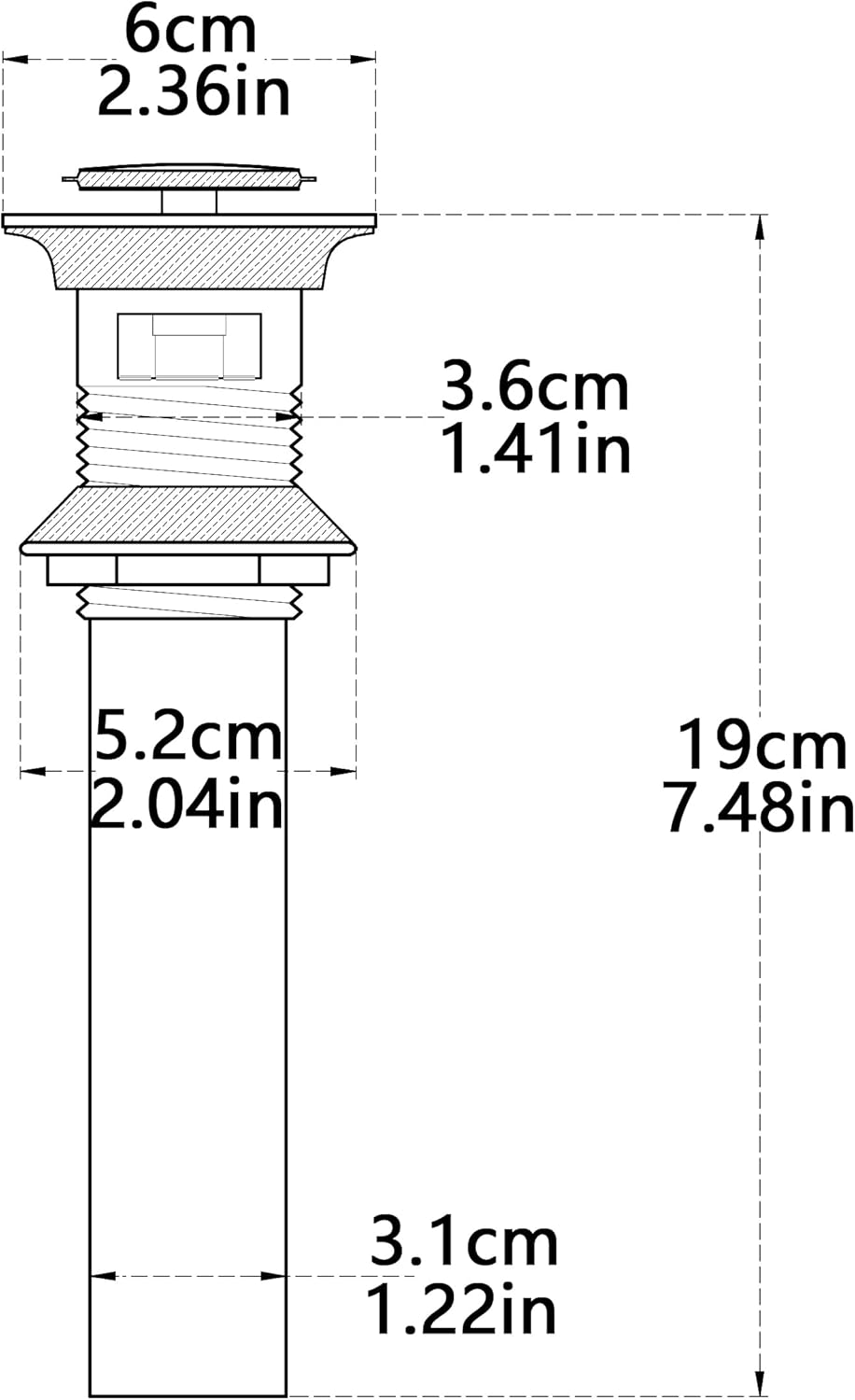 - Pop-up drain stopper, drain flange, threaded pipe are made from brass, tailpiece is made from stainless steel. All metal construction for maximum durability. Can ensure anti-corrosion and durability.