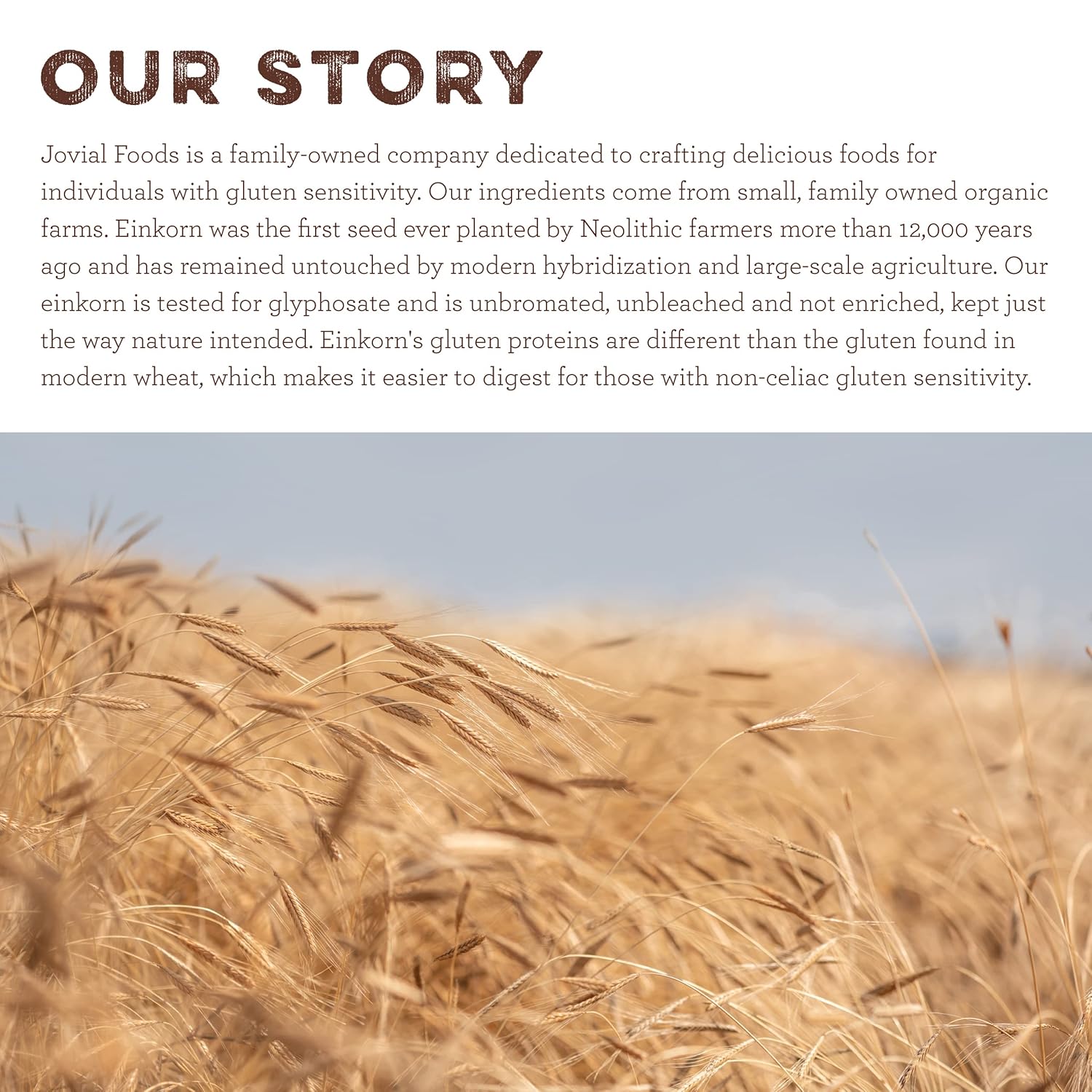 • 100% ORGANIC & NON-GMO - Einkorn is the only wheat that has never been hybridized. Jovial Einkorn Flour is USDA Certified Organic & Non-GMO Project Verified. It is not bromated, bleached, or enriched