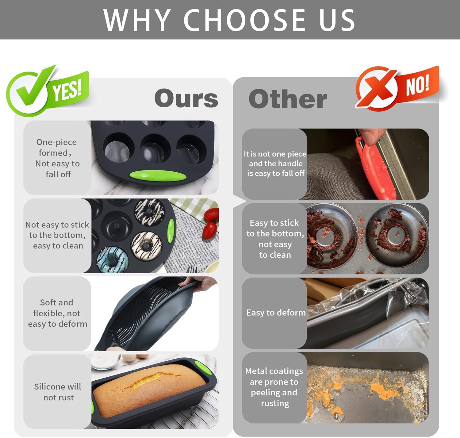- High Quality Material - The bakeware baking set are made of food grade silicone, is more flexible and durable.