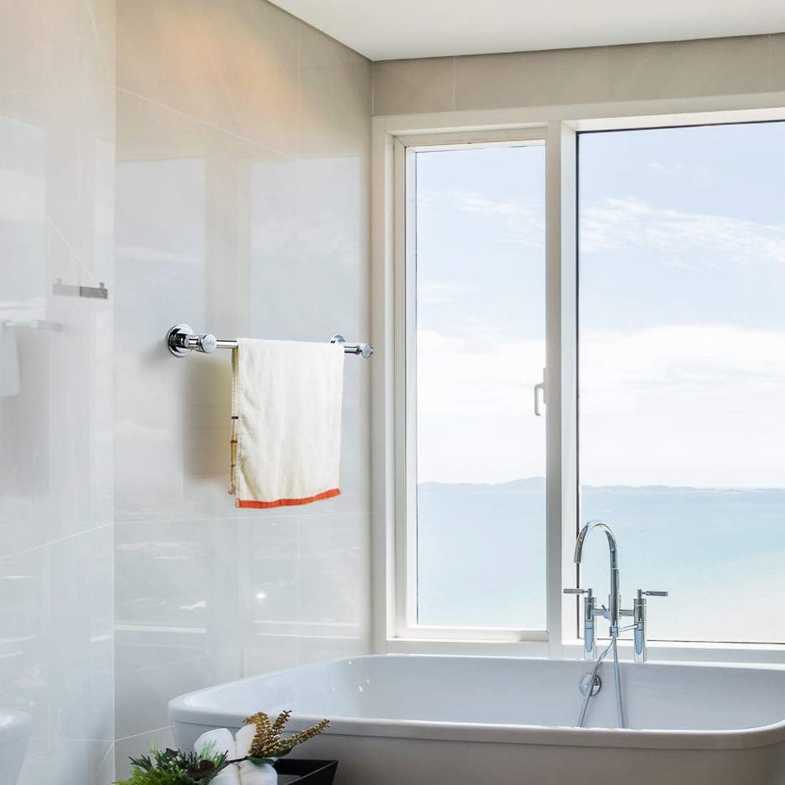 - Super easy to install.NO Drills,Save your wall.This Suction cup towel bar designed that provided the convenient of relocat or remove.
