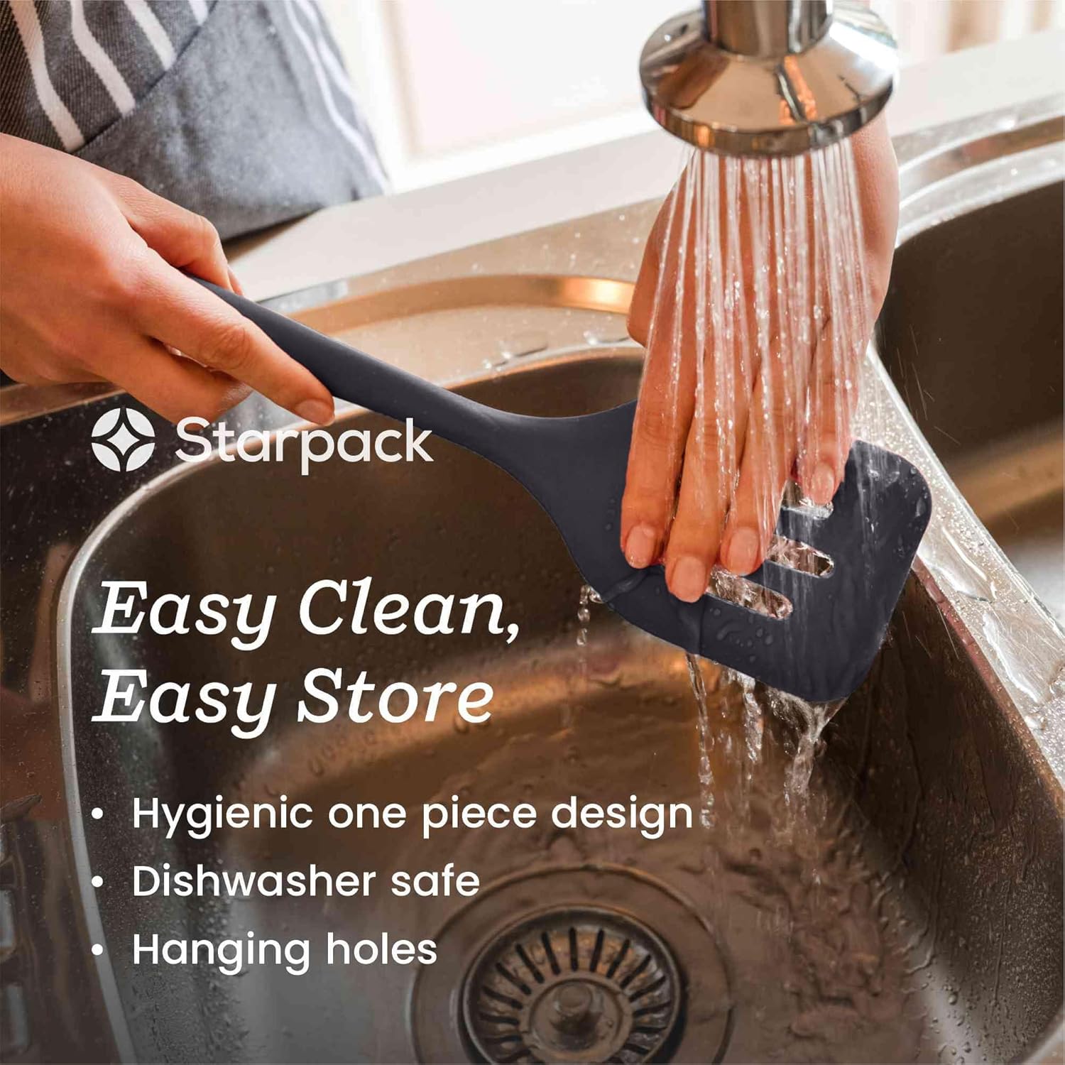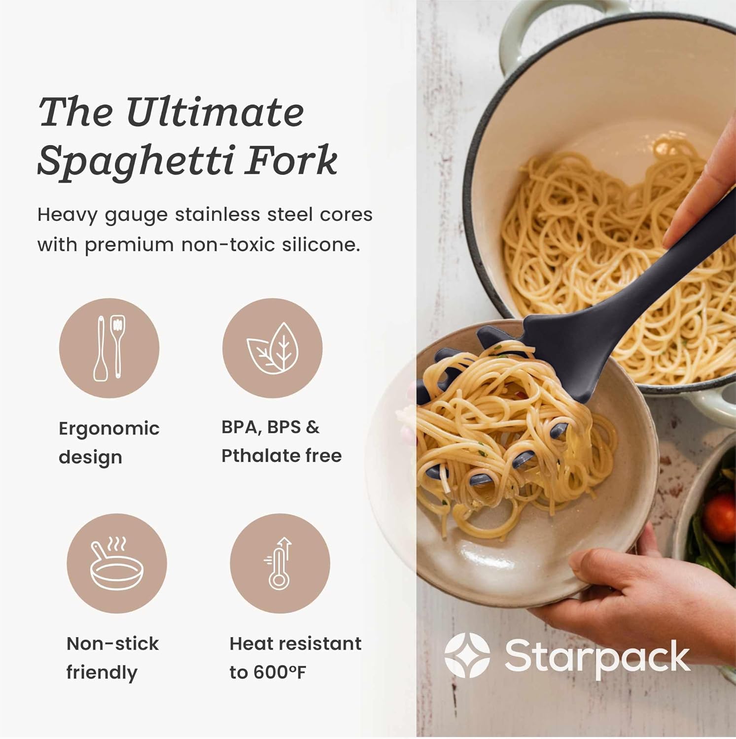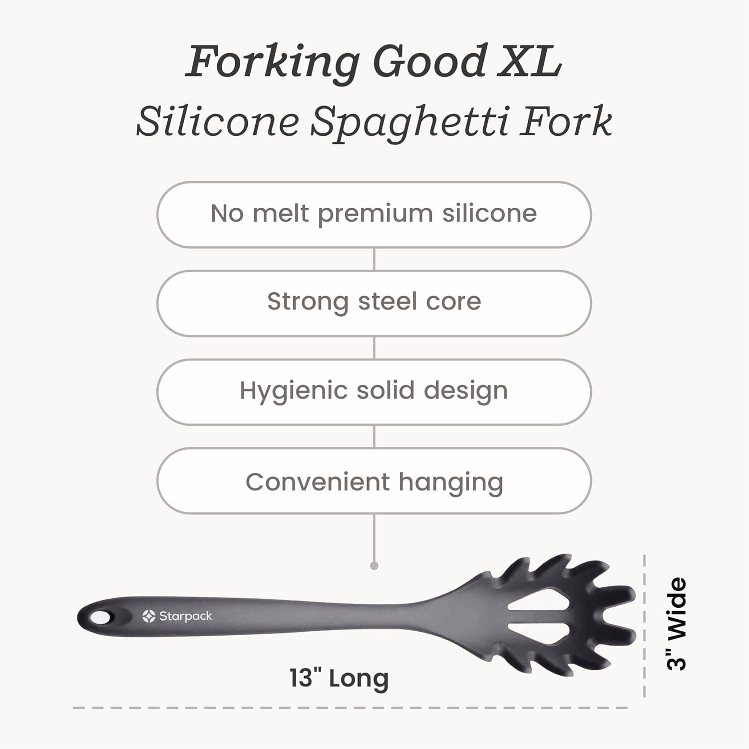 Starpack XL Premium Silicone Pasta Fork (13.5") - Spaghetti Spoon High Heat Resistant to 600°F - Silicone Pasta Spoon Strainer - Pasta Server Spoon with Teeth - Pasta Server Utensil