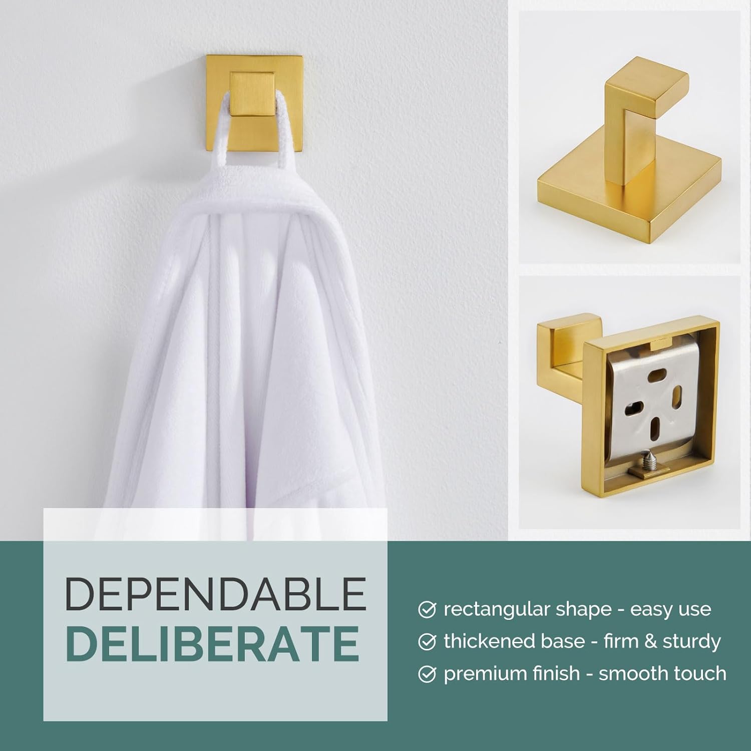- UTILITY AND GEOMETRIC STYLE: square hook with modern and minimalist design, helps organize robes, towels, loofahs, scarves, hats, purses, brushes, shower caps or other stuff in an uncluttered way.
