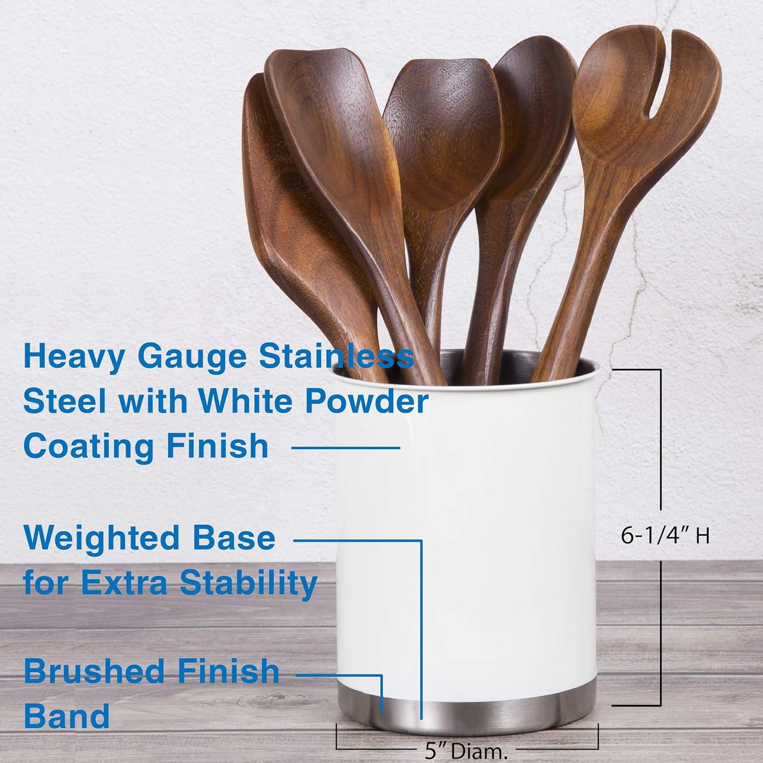 - Large-Capacity: Measuring 5" in diameter and 6.3" in height, this utensil holder has a spacious interior that holds spoons, whisks, spatulas, tongs, and other frequently used kitchen utensils, keeping your countertop neat and saving space
