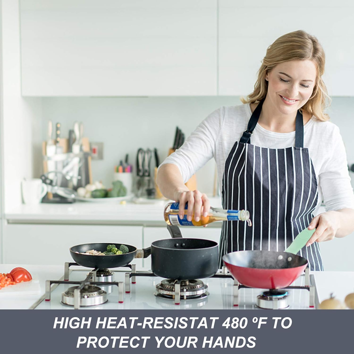 - KEEP SAFE : Removable silicone sleeve slips easily onto hot frying pan & pot hand grips, protects your fingers from burning. Safer to use than typical cloth mitts & small pot holders.keep your family safe ,for home wife,kids health gift.