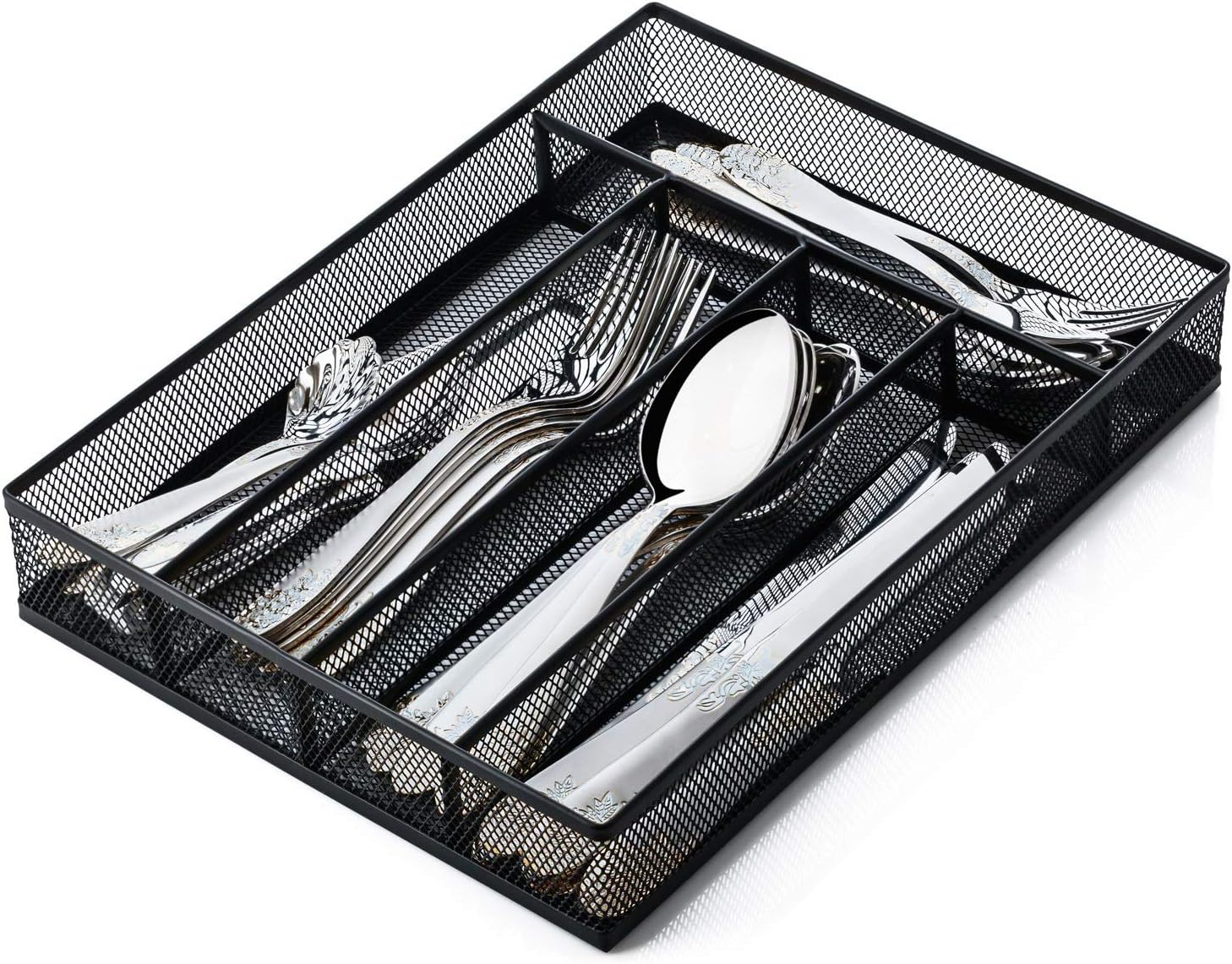 JANE EYRE Utensil Drawer Organizer, Cutlery Tray Silverware Flatware Storage Divider for Kitchen, Mesh Wire with Non-slip Foam Feet, 5 Component, Black