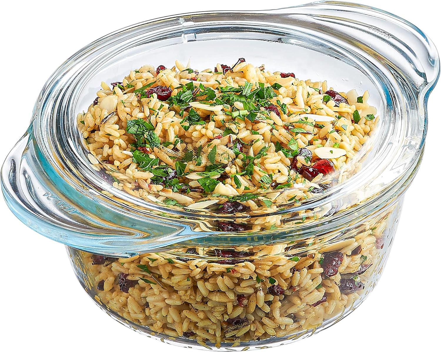 Glass Casserole Dish by Simax Clear Glass Round Casserole Dish with Lid and Handles Covered Bowl for Cooking Baking Serving etc. Microwave Dishwasher Oven and Stove Safe Cookware 1.75 Quart