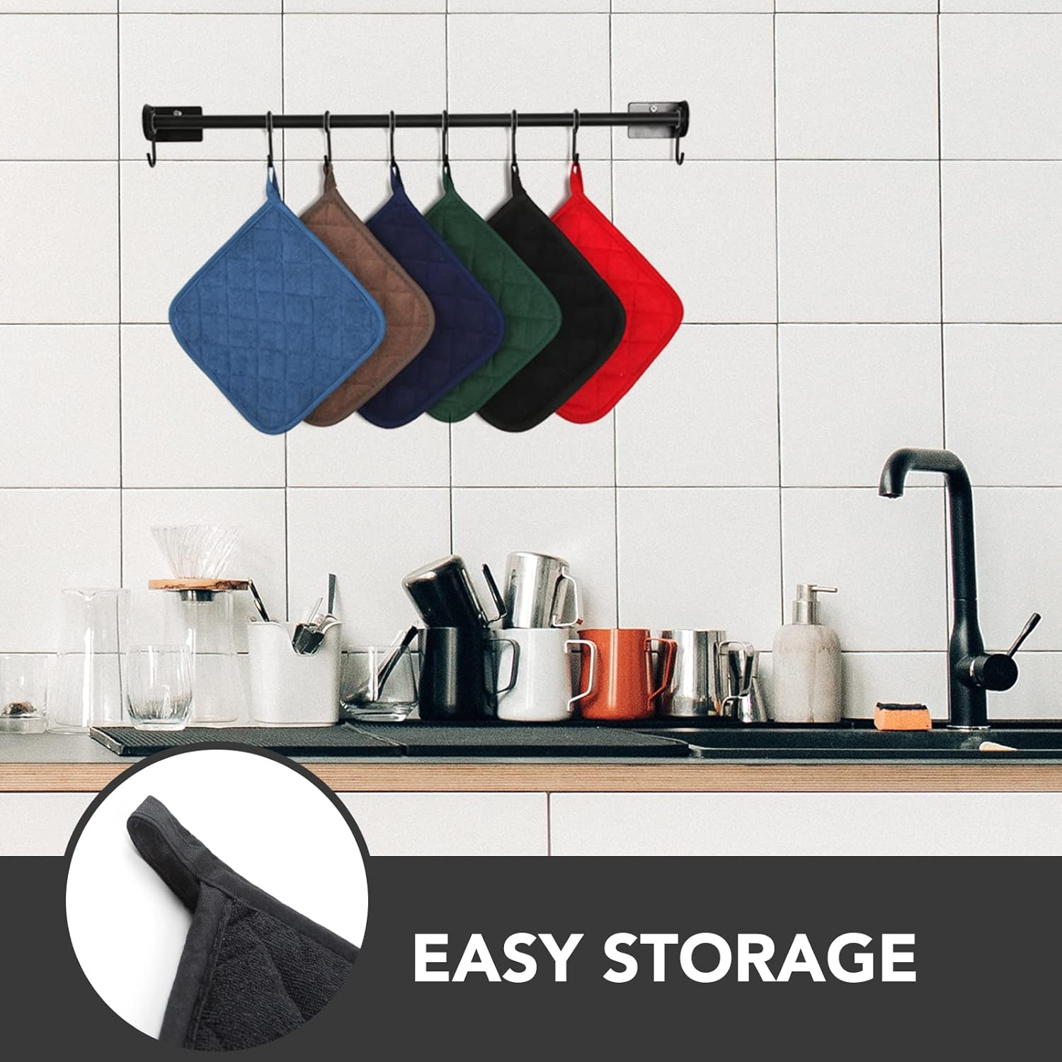 Joyhalo 4 Pack Pot Holders - Heat Resistant Oven Hot Pads, Terry Cloth, Black