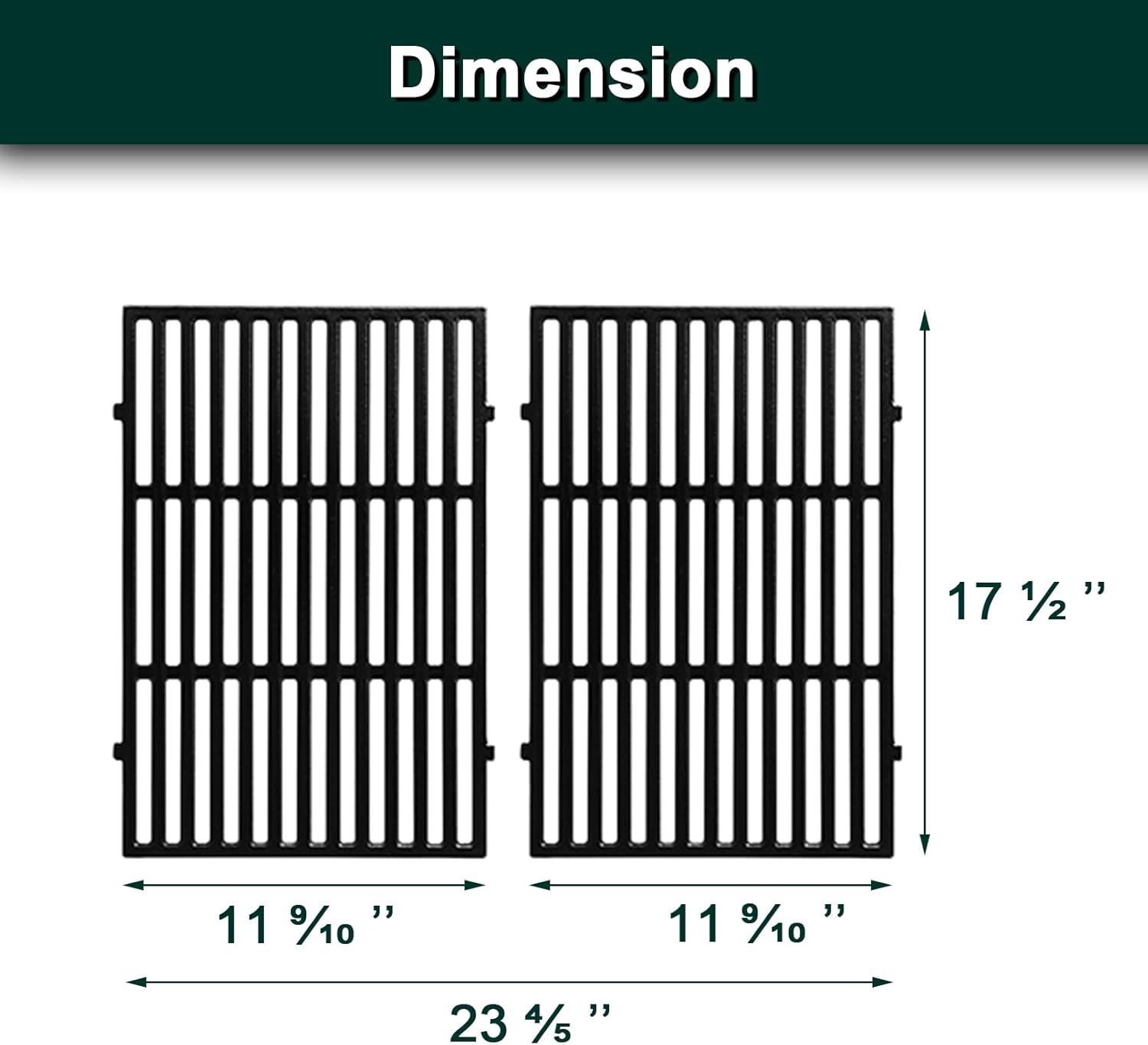 - 【Dimension and Package】 11 9/10’’ x 17 1/2’’ per weber grill grate, 23 4/5’’ x 17 1/2’’ for 2 Pcs weber spirit ii e-310 gas grill replacement parts, total 2 Pcs in 1 Pack weber grill parts (Please make sure the weber grill grates size and package is perfectly fit your weber spirit grill parts)