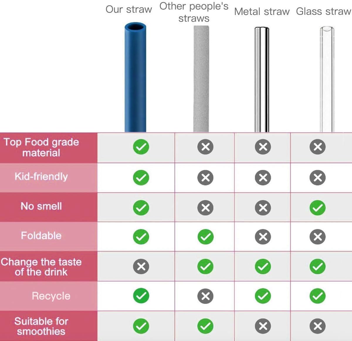 - PREMIUM QUALITY & ECO-FRIENDLY-Ditch the disposable straws and switch to these durable, reusable silicone straws made from high-quality, BPA-free, non-toxic materials. They’re safe, eco-friendly, and built to last, offering a healthier and more sustainable choice for you and the planet.