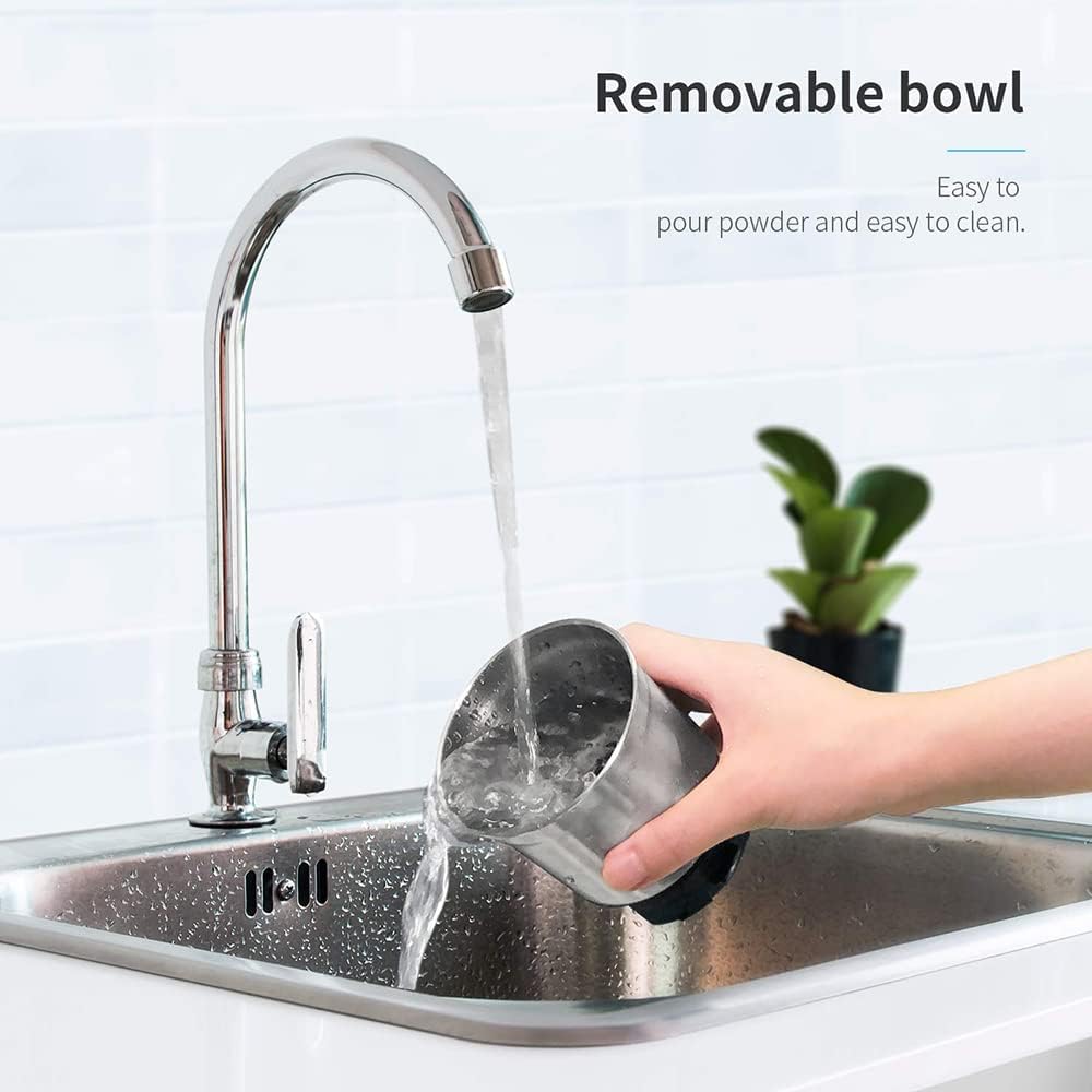 - With nice sealing ring in the lid to prevent powder splashing, no worry of being messy in kitchen.