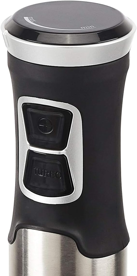 Amazon Basics Multi-Speed Immersion Hand Blender for Kitchen Mixing, Smoothies, Soups, 500 Watt Powerful, with Blending Stick, Whisk, Chopper and Beaker, Silver