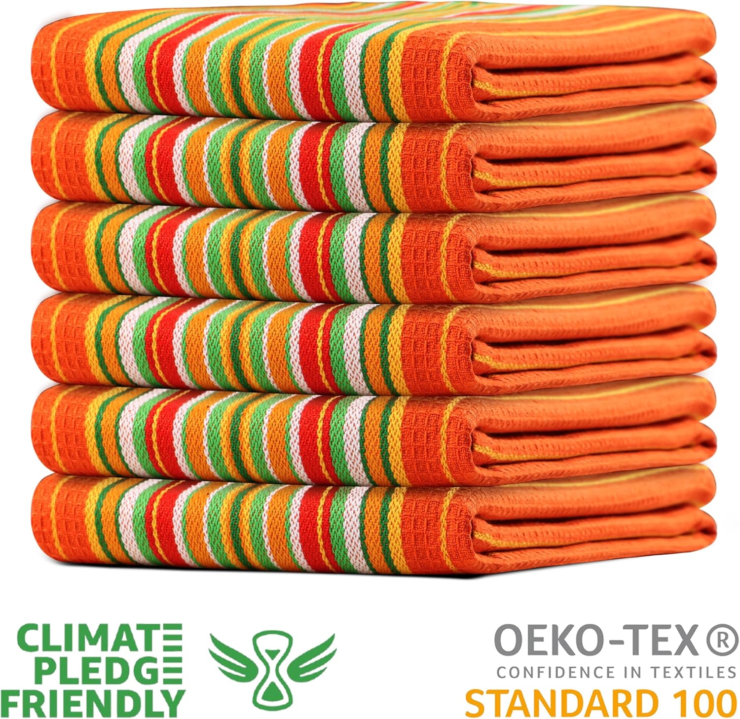 Urban Villa Kitchen Towels Waffle Stripes Dish Towels for Kitchen Orange Waffle Set of 6 Kitchen Towels Highly Absorbent 100% Cotton Over Sized 20X30 in with Mitered Corners Kitchen Hand Tea Towels