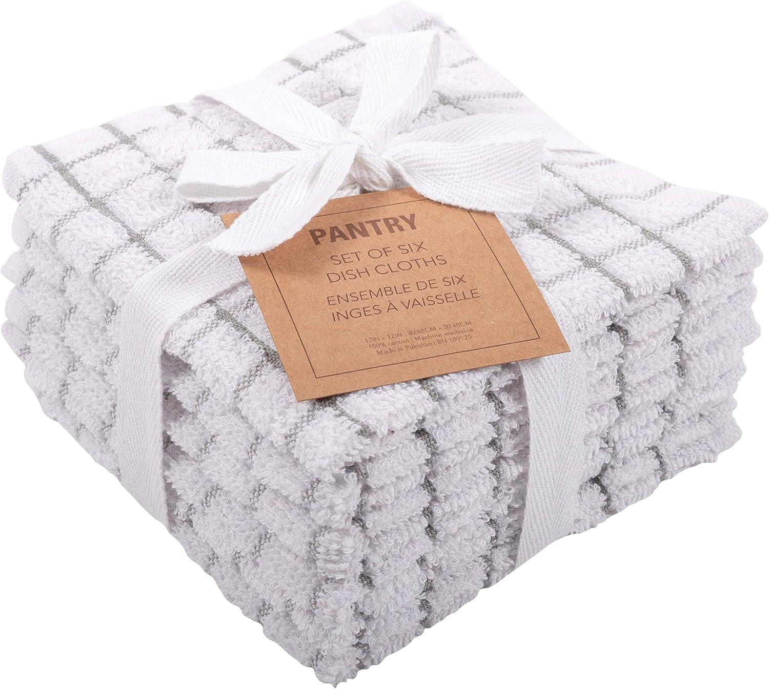 KAF Home Pantry 100% Cotton Checkered Grid Dish Cloths | Set of 6, 12 x 12 Inches | Absorbent and Machine Washable | Perfect for Cleaning Counters, and Any Household Spills - Gray
