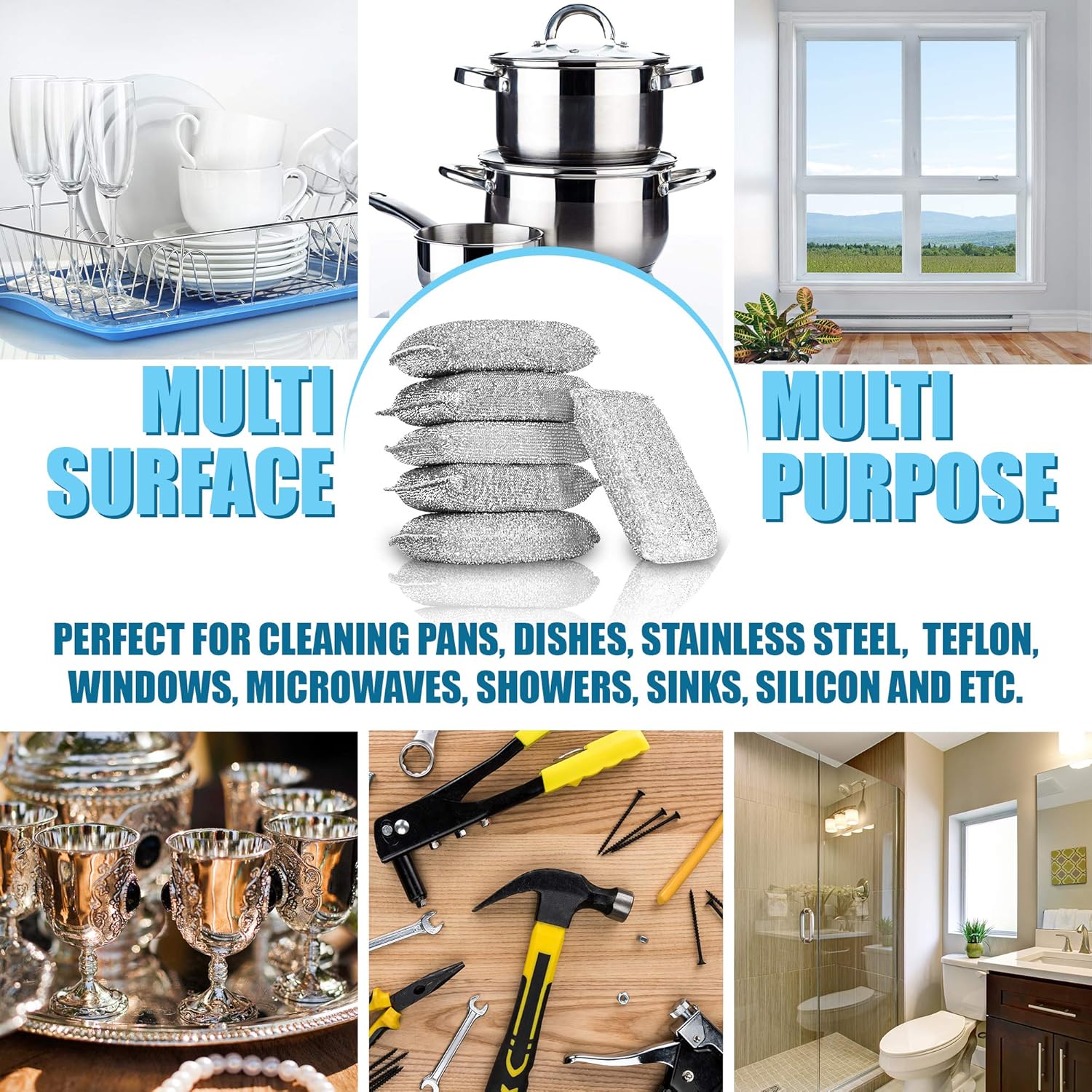 - DURABLE LONG LASTING MATERIALS: Unlike metal scrub sponges that rust easily, these polyester and polyurethane cleaner sponges will stain in excellent condition for up to 3 months (500 uses). Each set includes 6 scrubber pads in silver and gold, so you wonโt have to buy a new pack anytime soon!