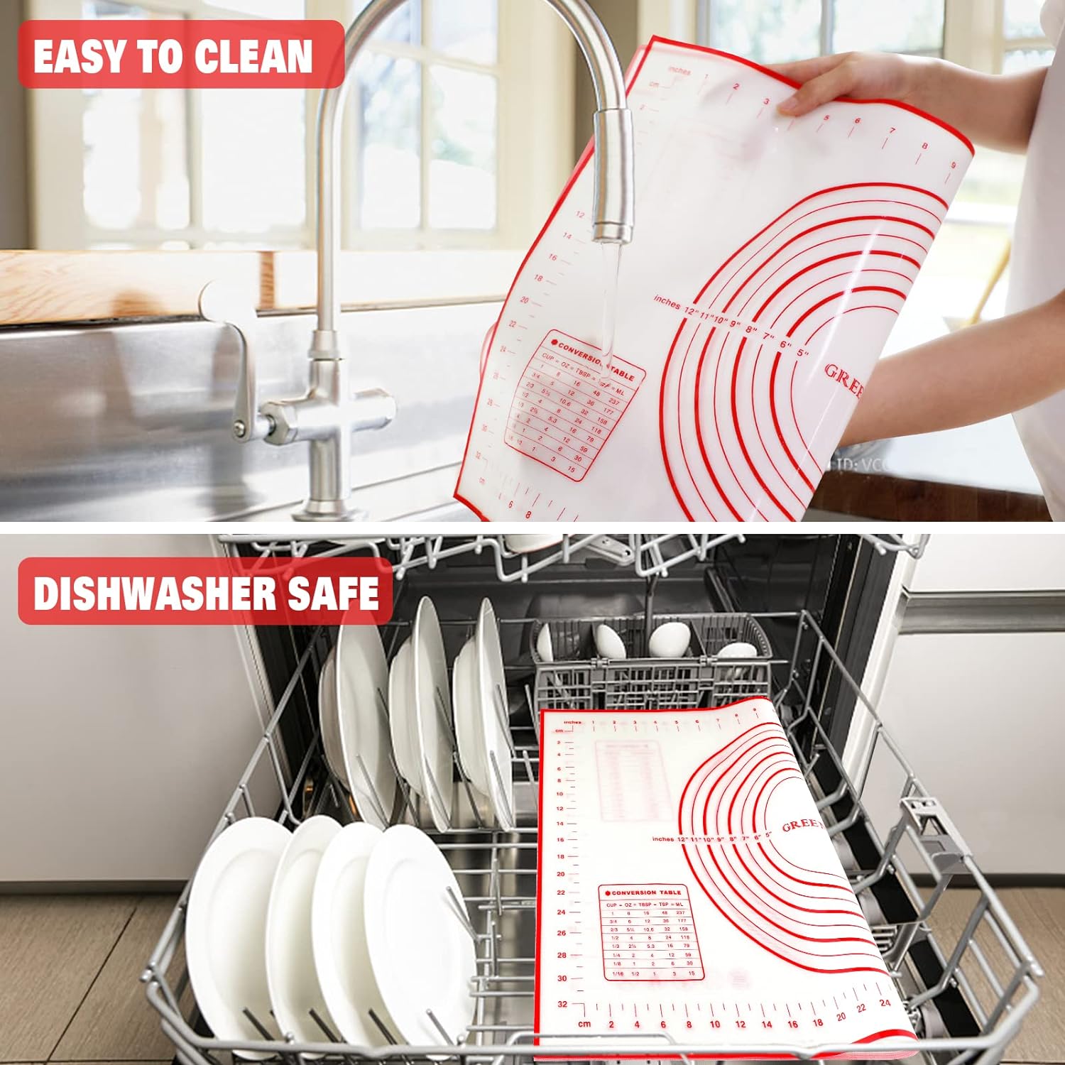 - ✔️ FOOD GRADE SILICONE: GREENRANIN Pastry Mat is made of premium silicone and glass fiber. It is safe, soft, durable and will not wrinkle or fade.