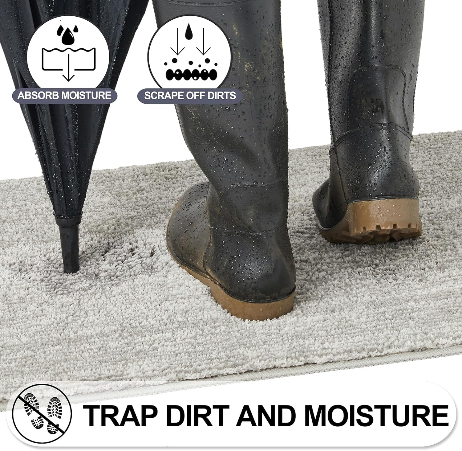 - 【TRAP DIRT & ABSORB MOISTURE】Eliminates dirty and wet foot prints when you entering the house. REFETONE door mat using double layer technology which helps to scrap off dirt, water, dust, grit, mud, sand, grass, slush, snow and absorb moisture from shoe. Say goodbye to messy floors and keep your indoor environment clean and tidy. Indoor doormat perfect for high-traffic areas and widely used for all seasons, especially for the rainy, snowy, or muddy weather. Enjoy your home every time!