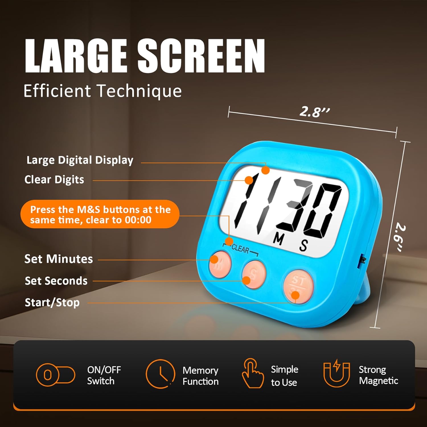 - 2 pack digital kitchen timers with large display and 3 buttones, super easy to read and set up.